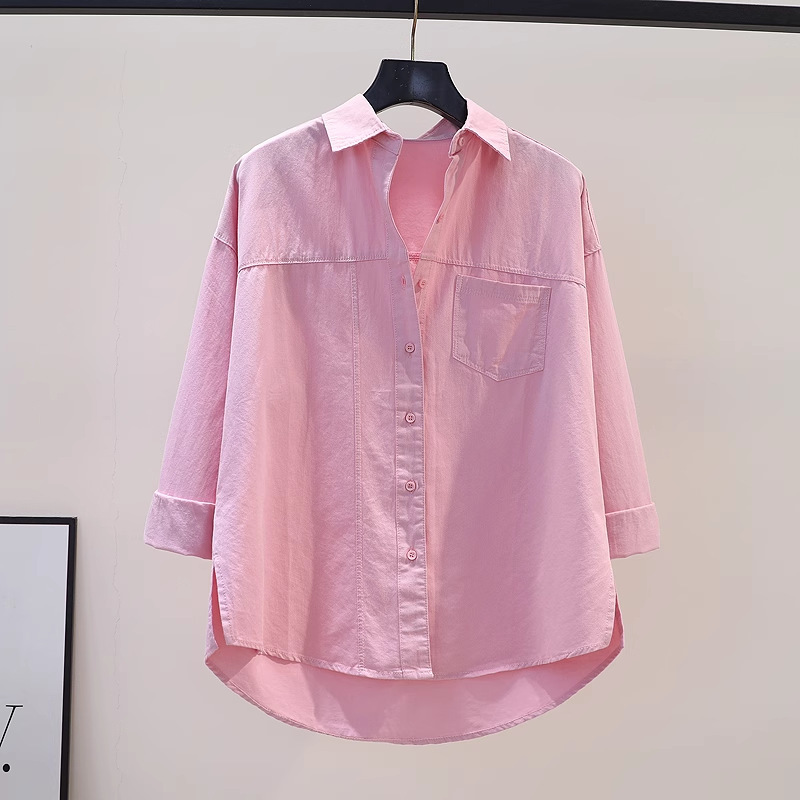 Athvotar Athvotar 2025 Spring And Autumn Arts Fan Top Dress Design Sense Stitched Pink Side Open Fork Loose Casual Shirt Woman