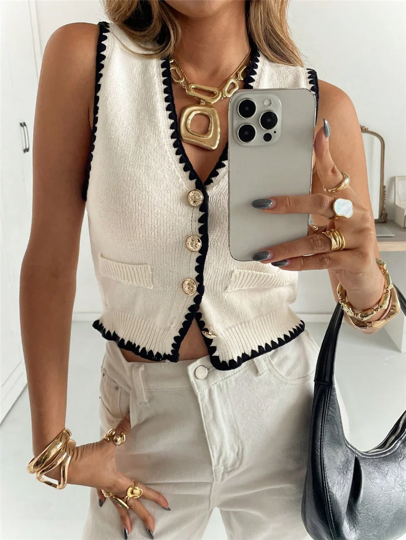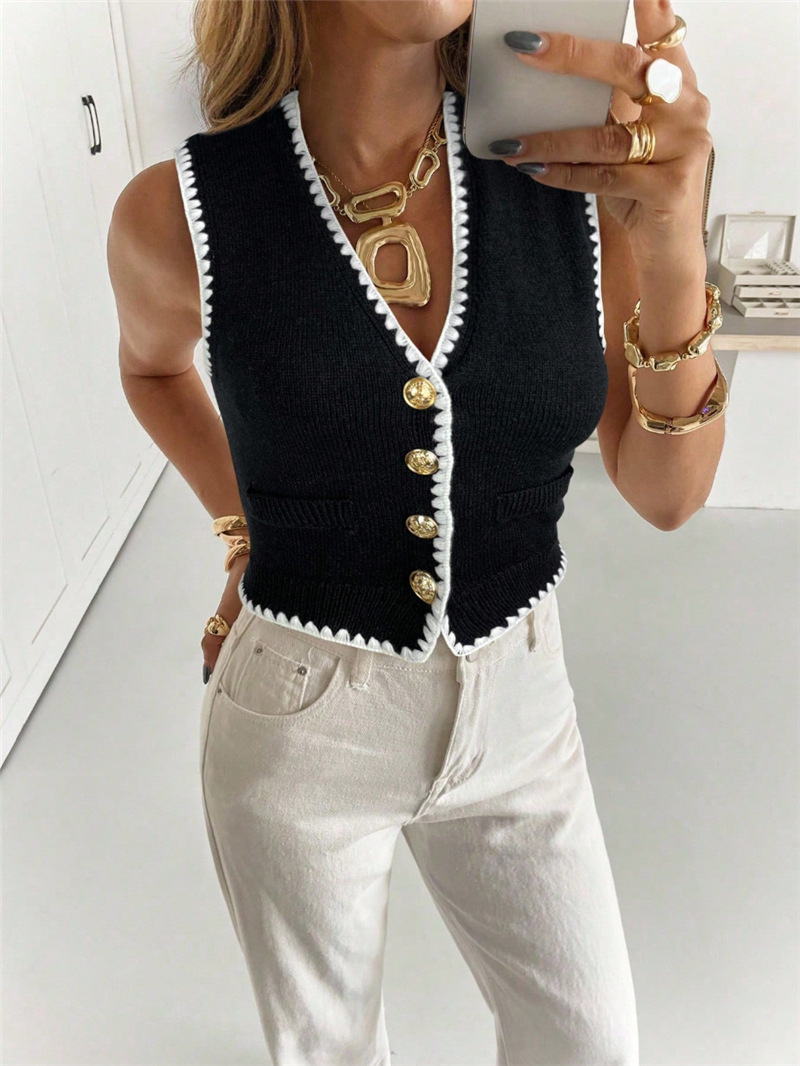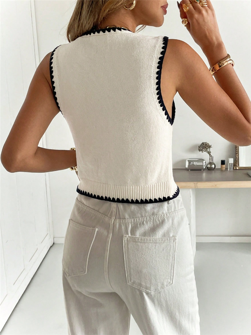 Athvotar Athvotar 2025 Women's Flower Decoration Single-Billed Casual Knitted Vest Sweater