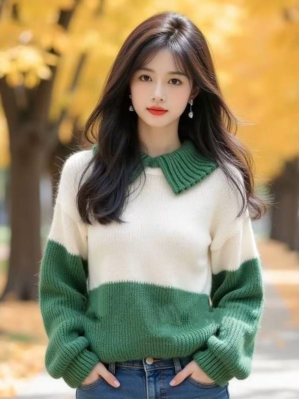 Athvotar Athvotar And White Bumped Jumper Women's New Autumn And Winter 2025 Small Man Chic Beautiful Little Syruped Knitting Shirt