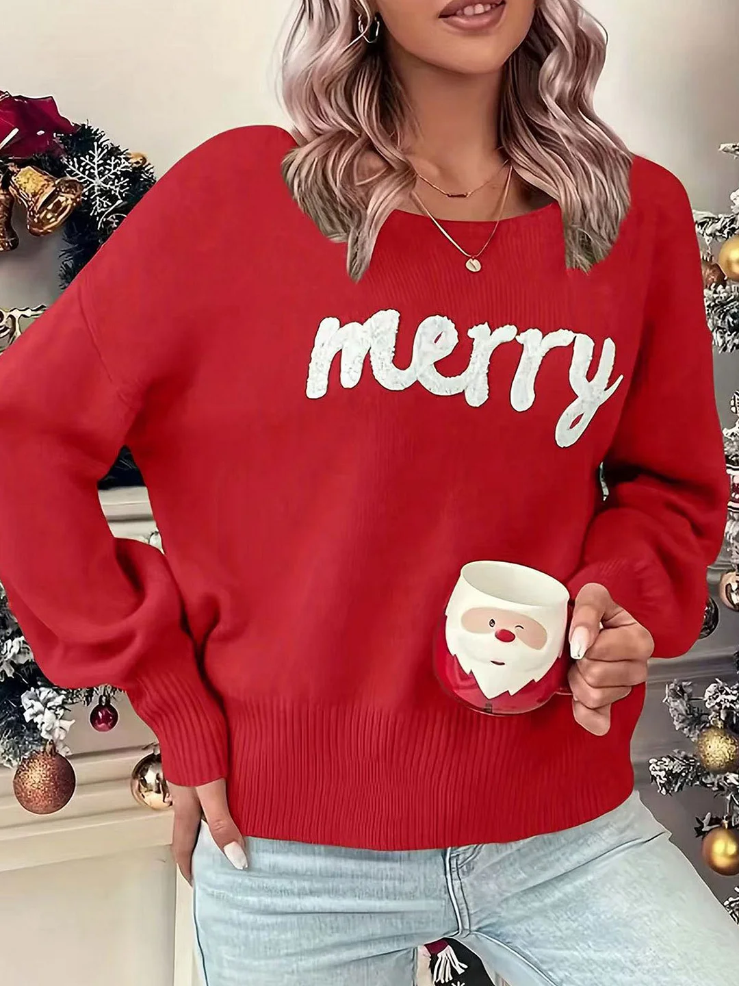 Athvotar Athvotar And Winter Christmas Sweater Women Loose Lettered Long-Sleeved Knitted Shirt Head