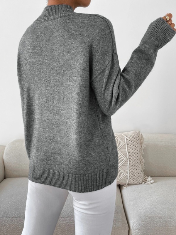 Athvotar Athvotar And Winter Half-High Collar Cover Long-Sleeved Sweater Women's Fashion Solid Color Loose Knitting Top