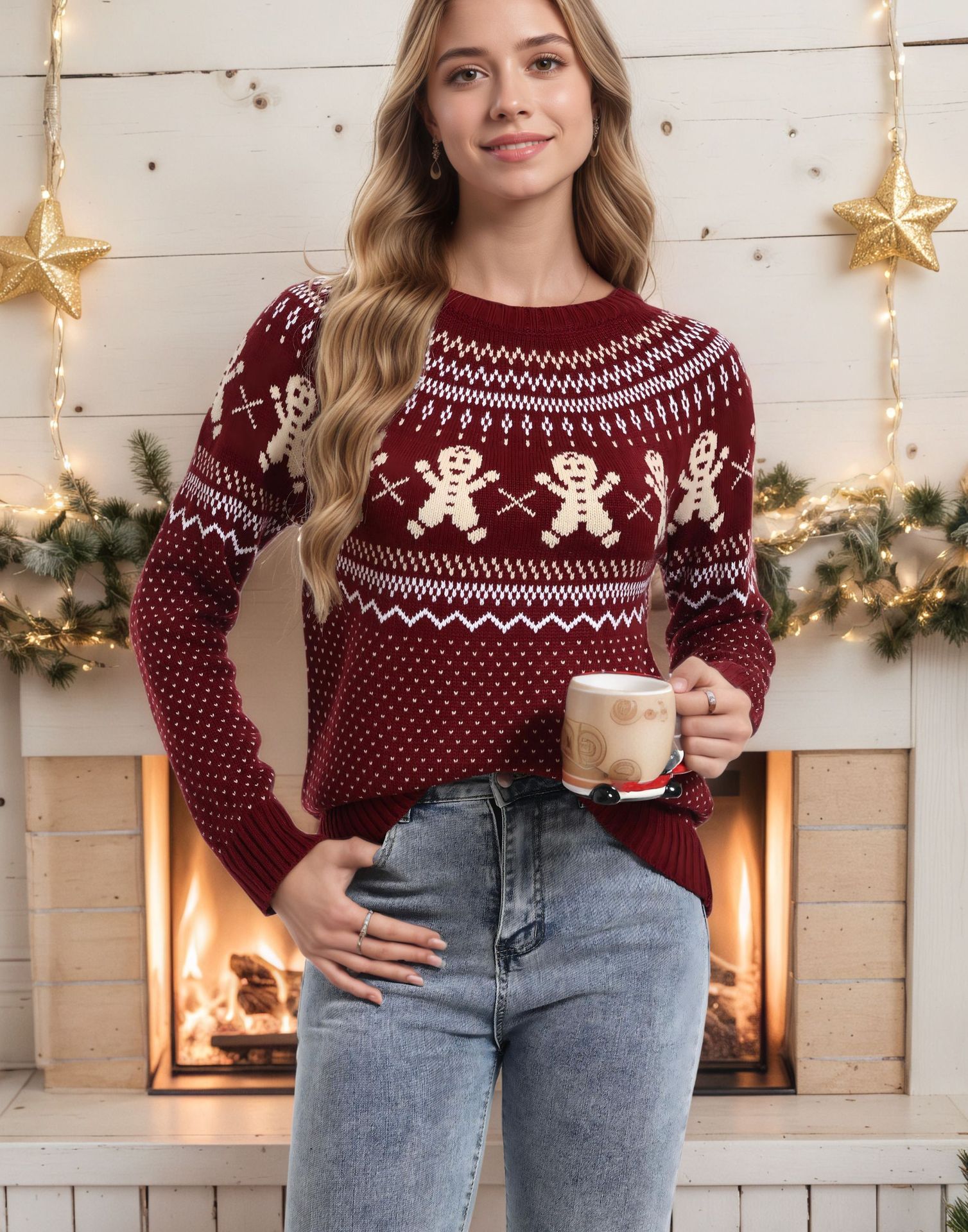 Athvotar Athvotar And Winter New Christmas Sweater Women Loose Knitting Wave Point Snowflake Cartoon Coat