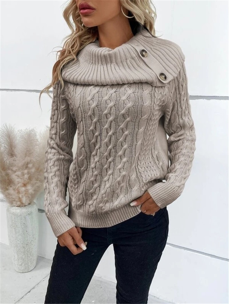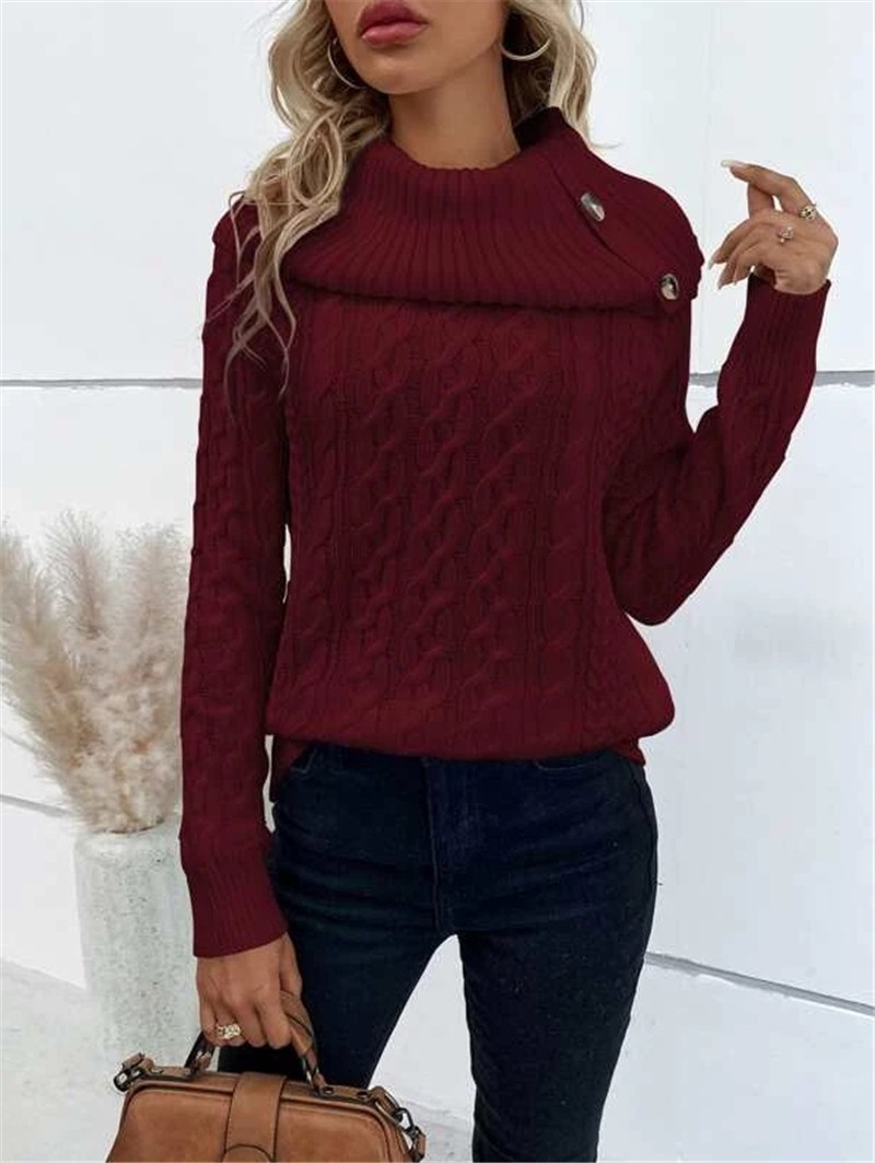 Athvotar Athvotar And Winter New Knitted Collar Button Design Shoulder Sleeve Sweater