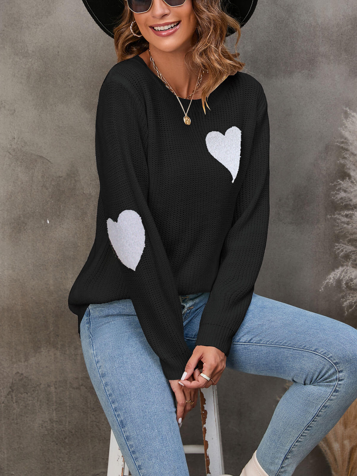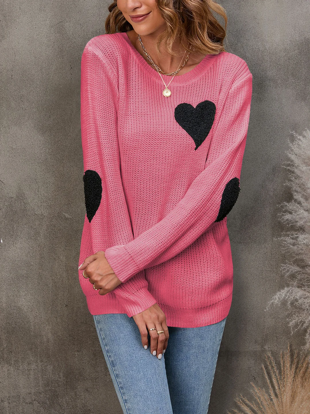Athvotar Athvotar And Winter New Round Collar Solid Color Small Love Jacket Loose Sweater Knitted Shirt Girl