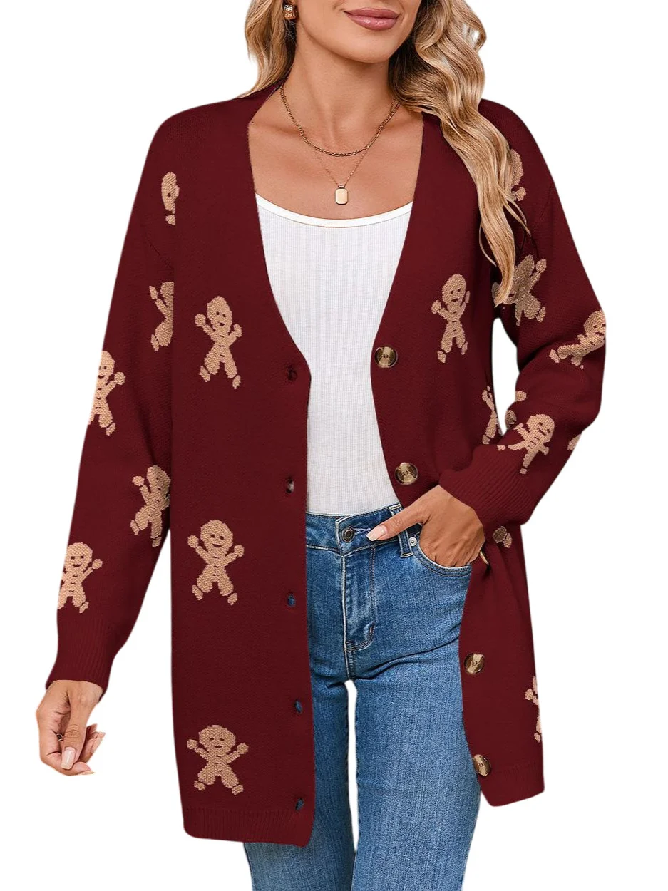 Athvotar Athvotar And Winter New Sweater Female Christmas Cartoon Embroidered Long Knitted Cardigan Jacket