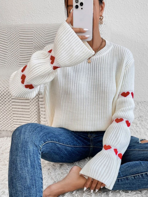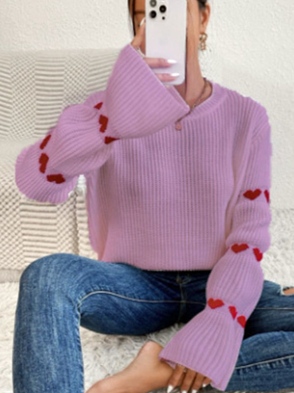Athvotar Athvotar And Winter Sweater Women's Loose Long-Sleeved Striped Elbow Love Collar Knitted Shirt