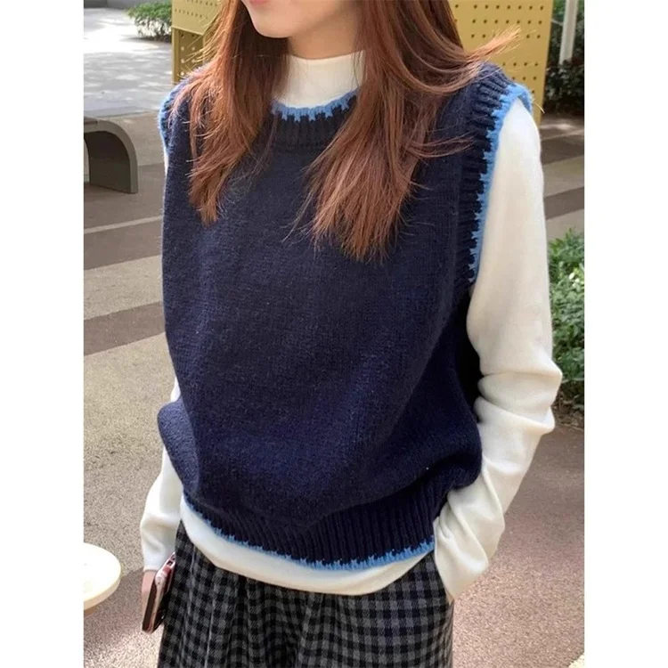 Athvotar Athvotar And Winter Women's New Korean Color Knitted Vest Folded Loose Sleeveless Tops Horse Clip Shoulder 2025
