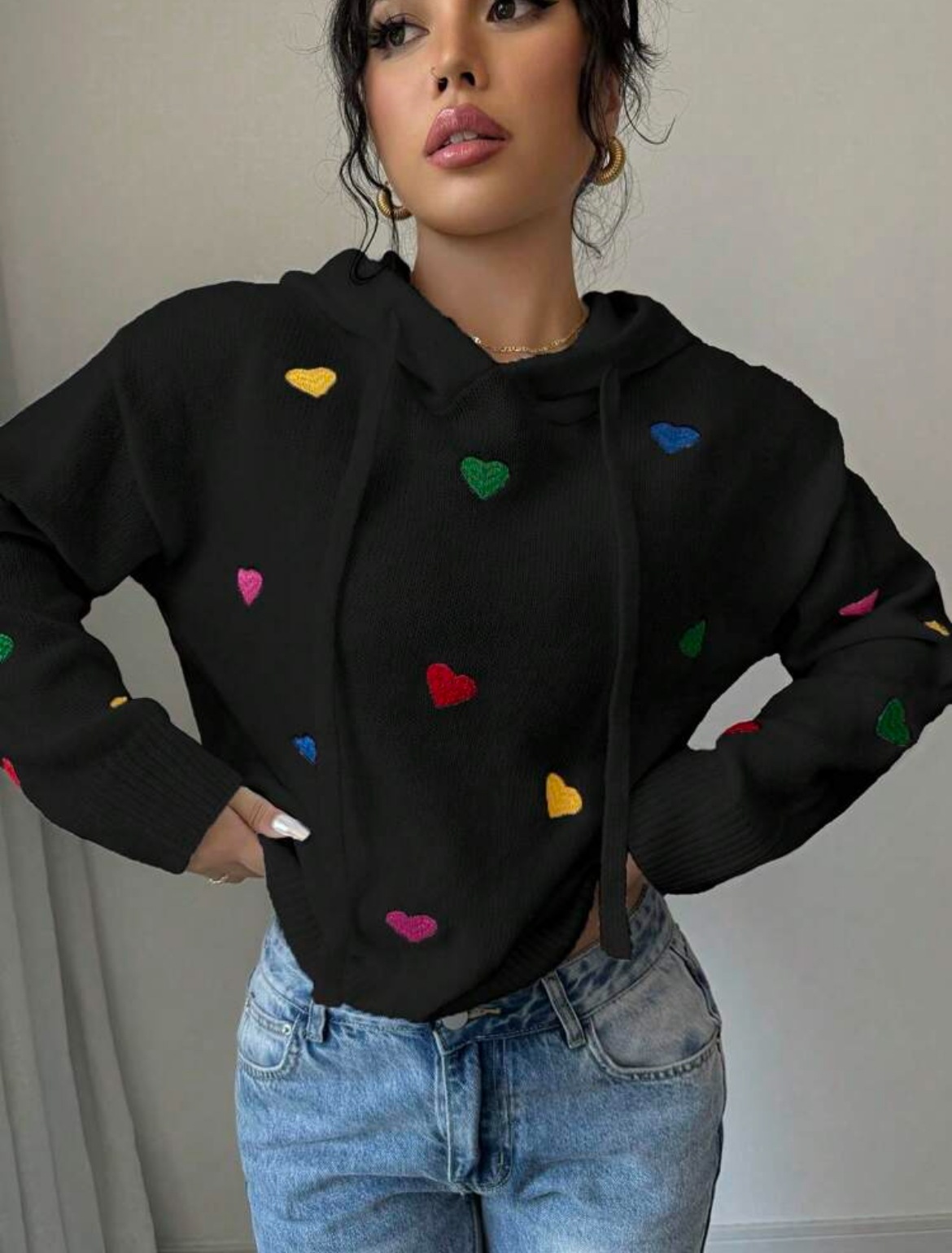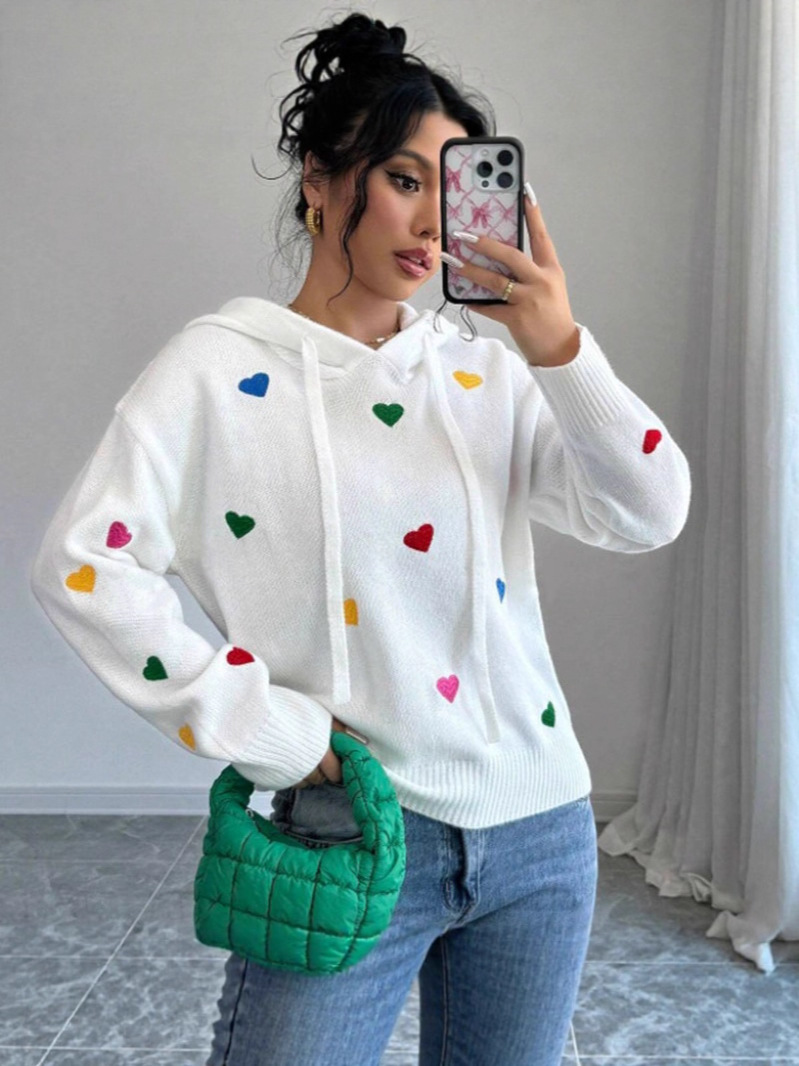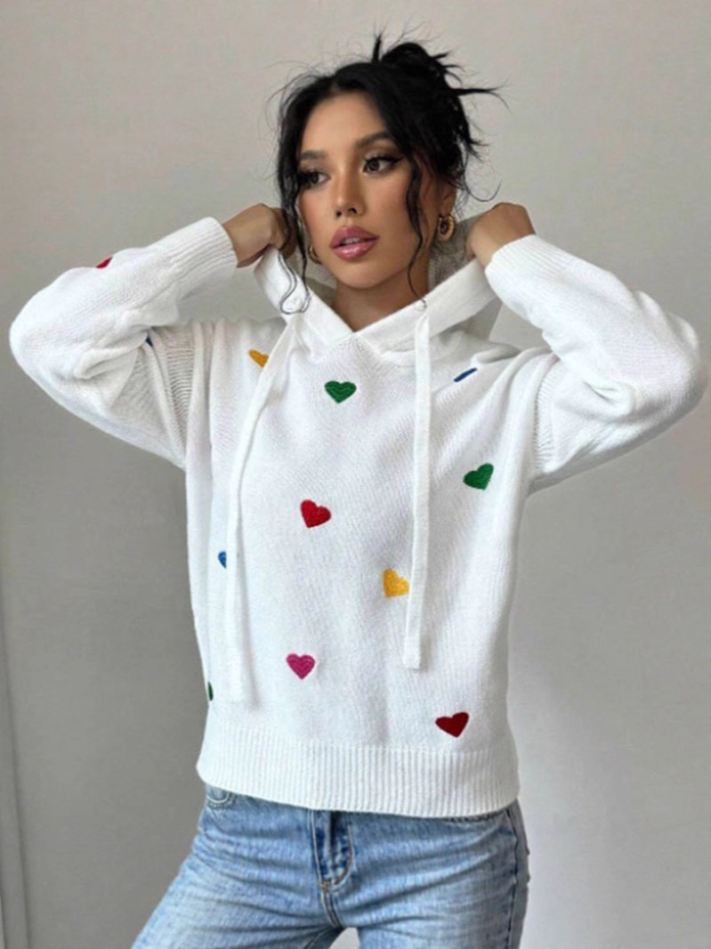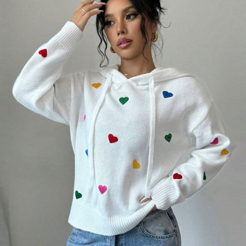 Athvotar Athvotar And Winter Women's Sweater Fashion Color Love Hooded Long-Sleeved Knitted Shirt