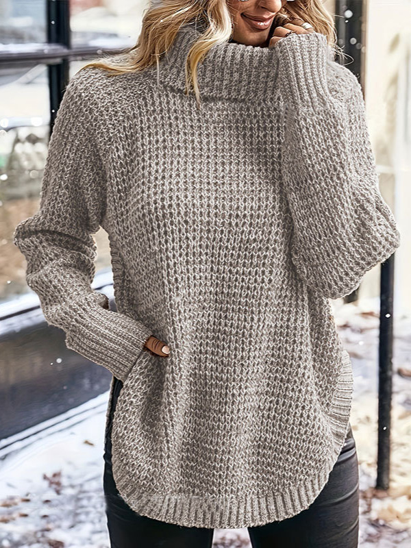 Athvotar Athvotar And Winter Women's Sweater Fashion High-Pin Open Fork Cover Long-Sleeved Knitted Shirt Woman
