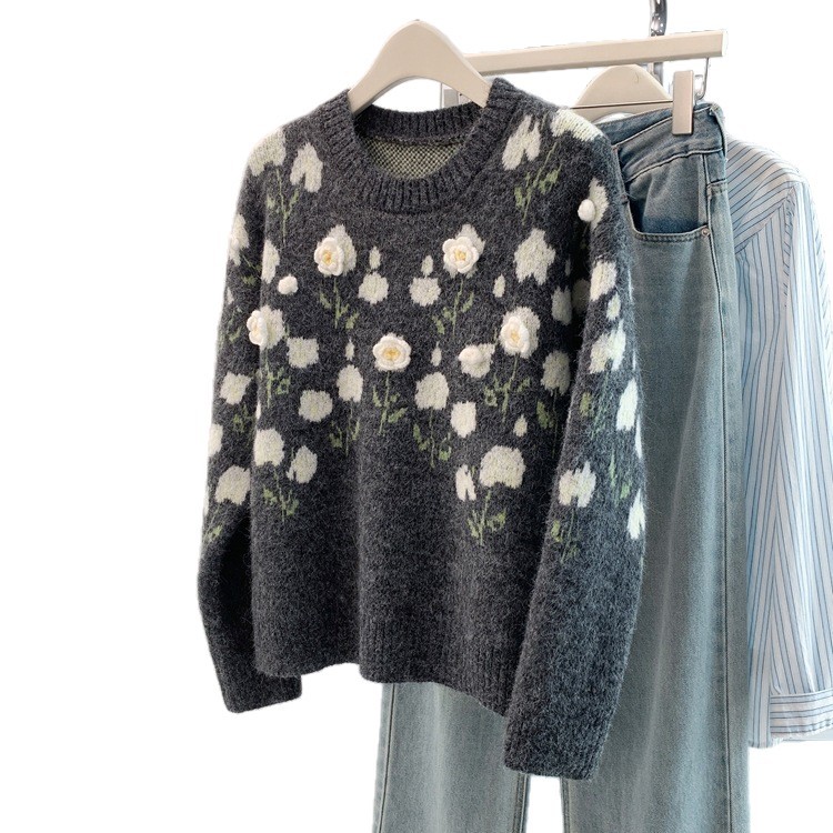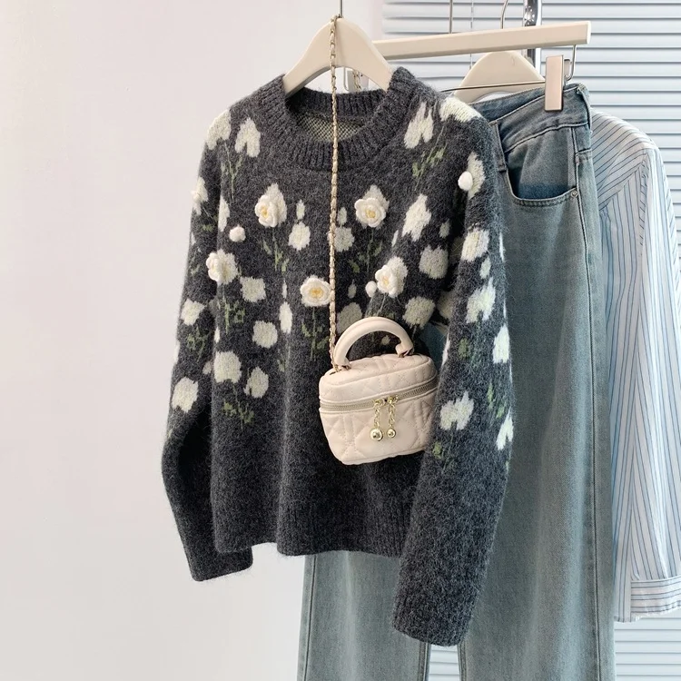 Athvotar Athvotar Autumn And Winter Heavy Industry Flowers Women Knitted Cardigan Fashion Women Sweet Sweater Women Coat Top