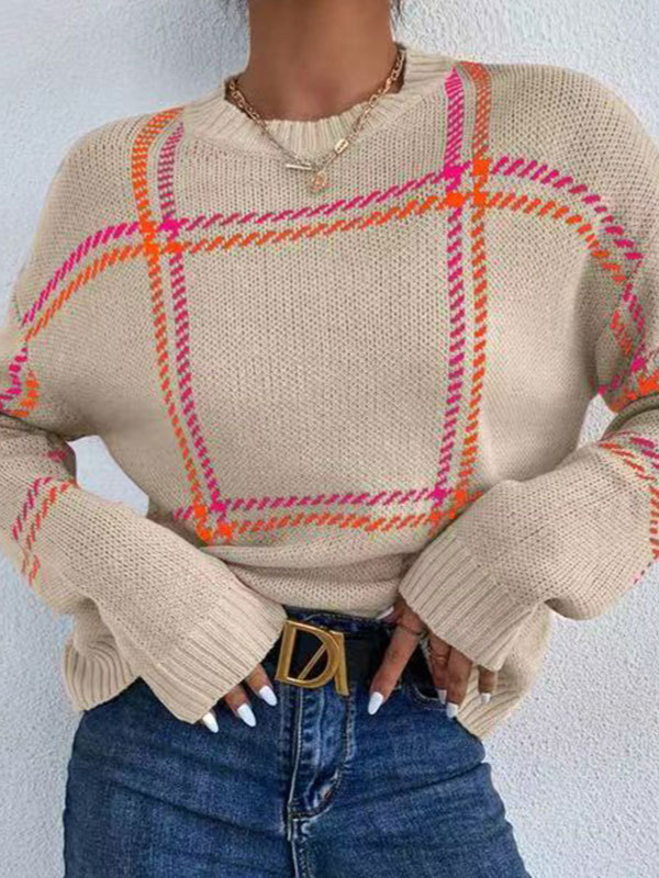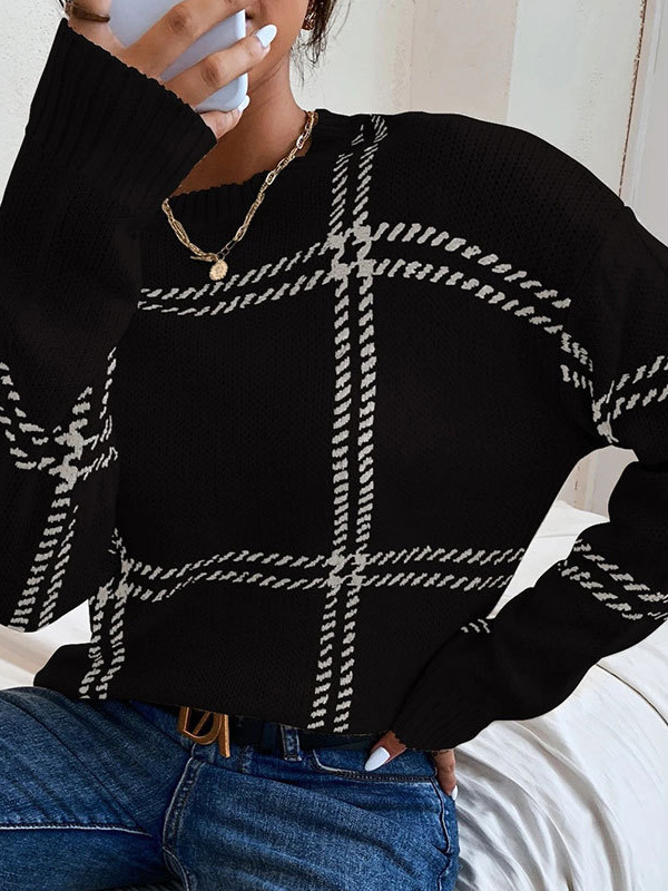 Athvotar Athvotar Autumn And Winter New Lattice Color Collar Sweater Women Casual Long-Sleeved Round Collar Collar Knitted Shirt