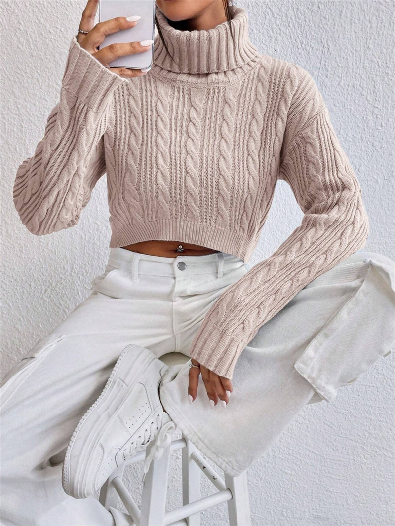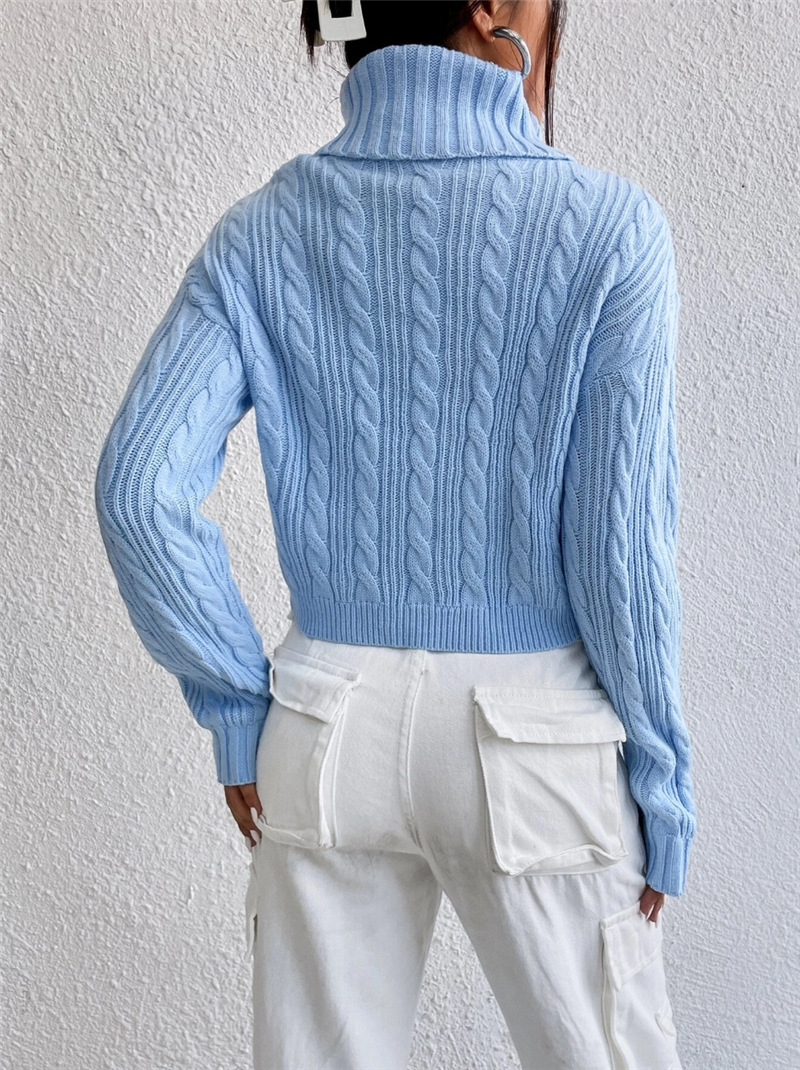 Athvotar Athvotar Autumn And Winter New Women's High-Neck Long-Sleeved Sleeve Thighs Short Sweater