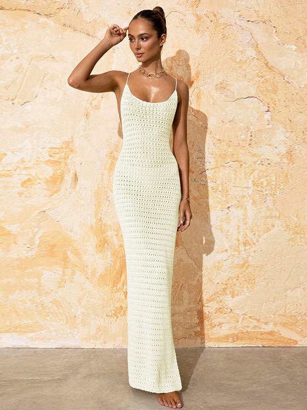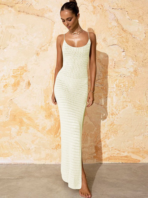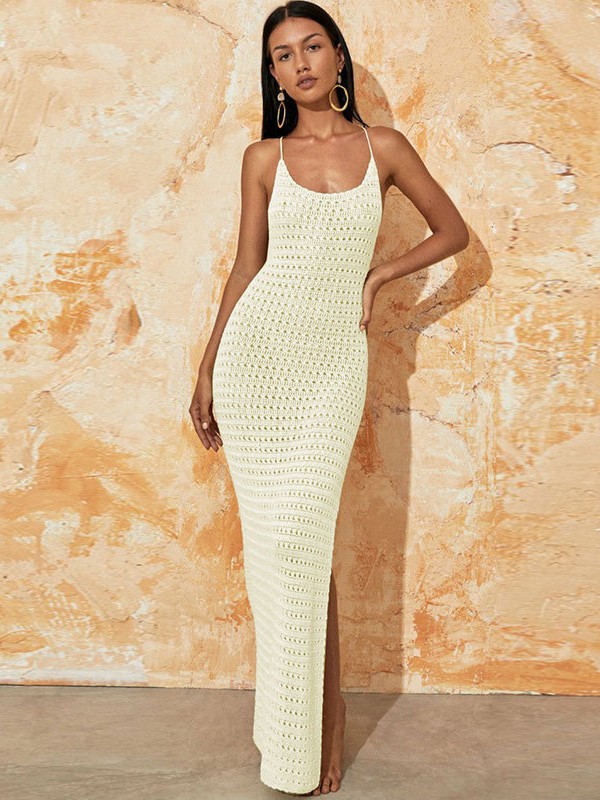 Athvotar Athvotar Beach Hoodie Sexy Knitted Empty Back Tie With Open-Fork Swimsuit Beach Dress Sunscreen