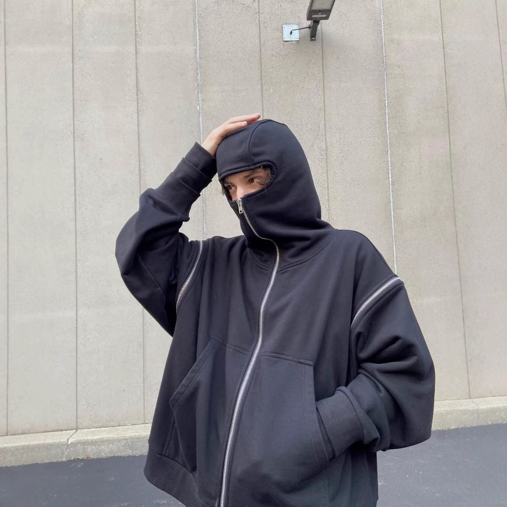 Athvotar Athvotar Brand Plus Velvet Double Hat Unique Design Hooded Jacket Autumn And Winter New Men's And Women's Loose Y2K Jacket