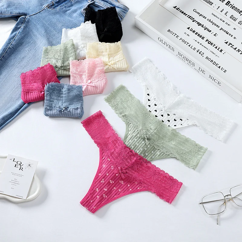 Athvotar Athvotar Breathable Thread Cotton Splicing Lace T-Shirt Cotton Lace Lace Side Large Size Low-Rise T-Pants Ladies Trousers