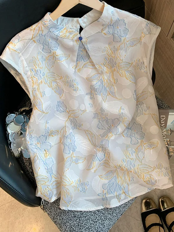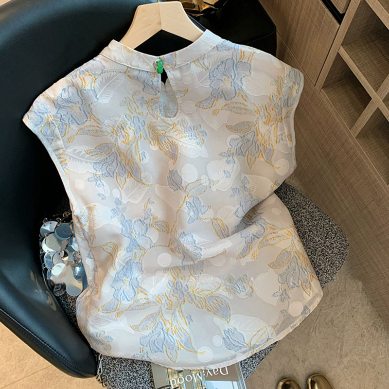 Athvotar Athvotar Chinese Collar Buckle Embroidered Jahua Sleeveless Shirt Women 2025 New Zen Age Reduction Chic Vest Top