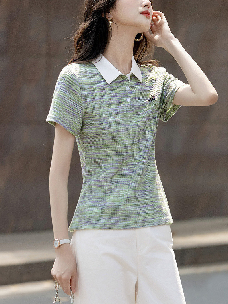 Athvotar Athvotar Collar Three-Dimensional Brooch Short-Sleeved Knit Shirt Women's Summer New Fashion Design Sense Positive Shoulder Thin Top Tide