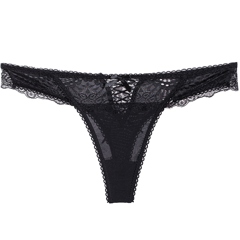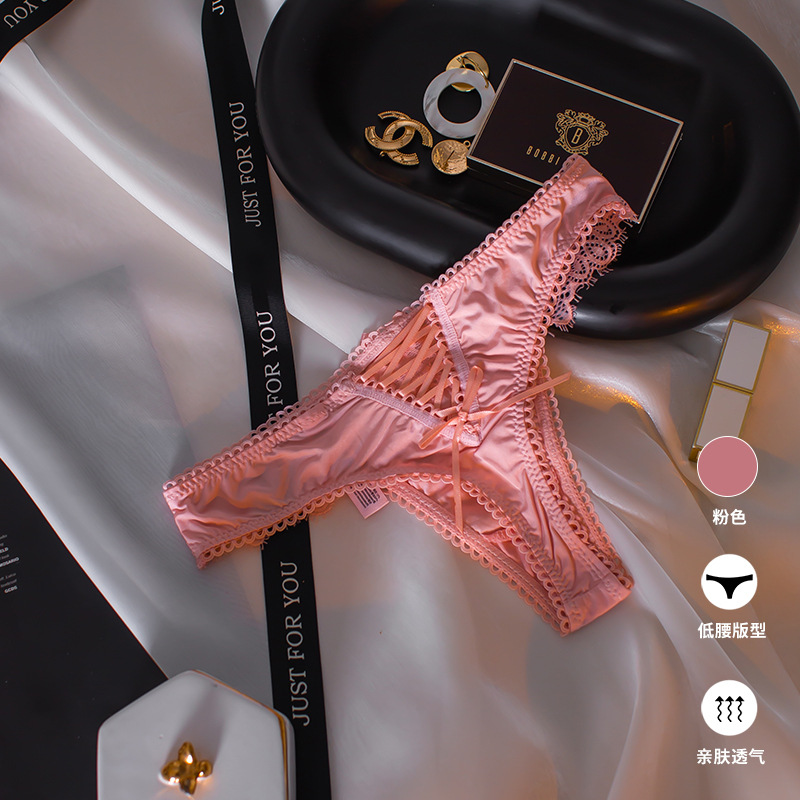 Athvotar Athvotar Color After The Hollow Strap Lace Side Thong Spliced Ice Silk Cotton Crotch Low-Rise Lady T-Trousers T-Trousers
