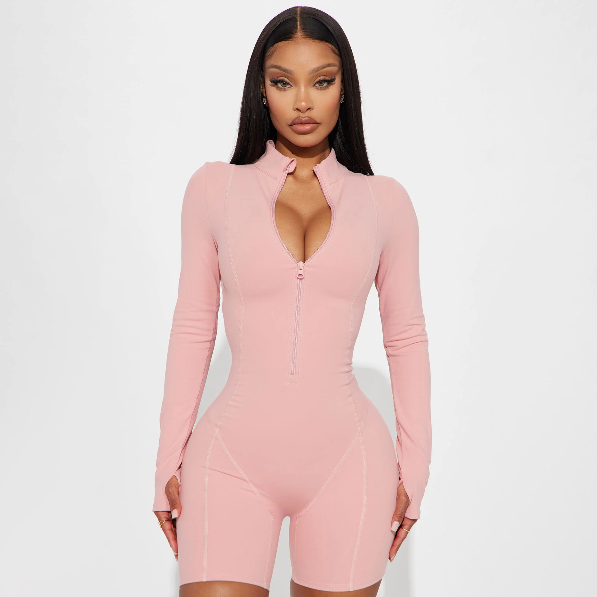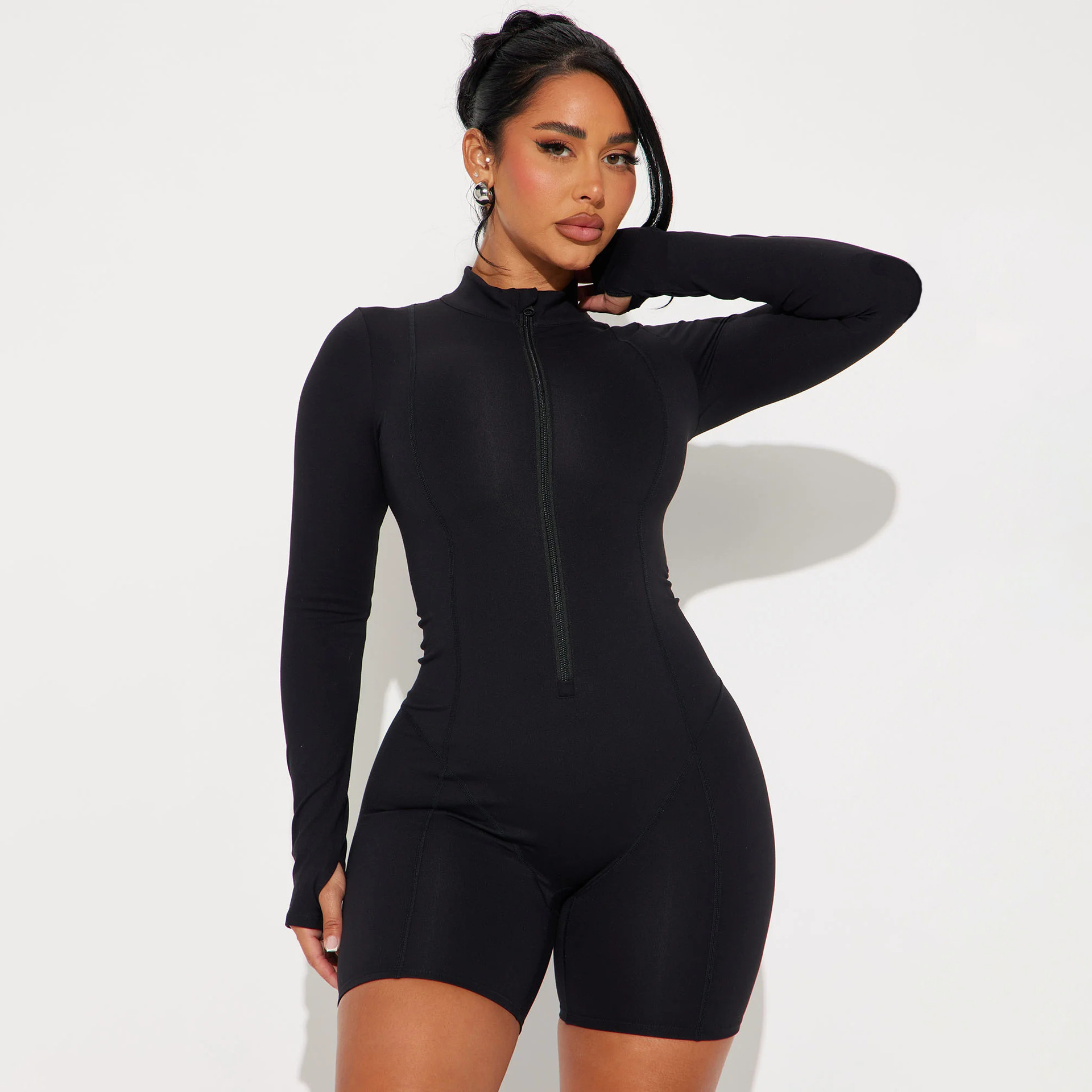 Athvotar Athvotar Color Design Sense Sports Uniformed Women's Solid Shorts Long-Sleeved Sports Yoga Suit Women's Niche Front Zipper