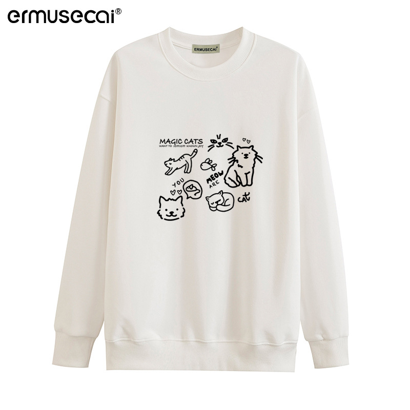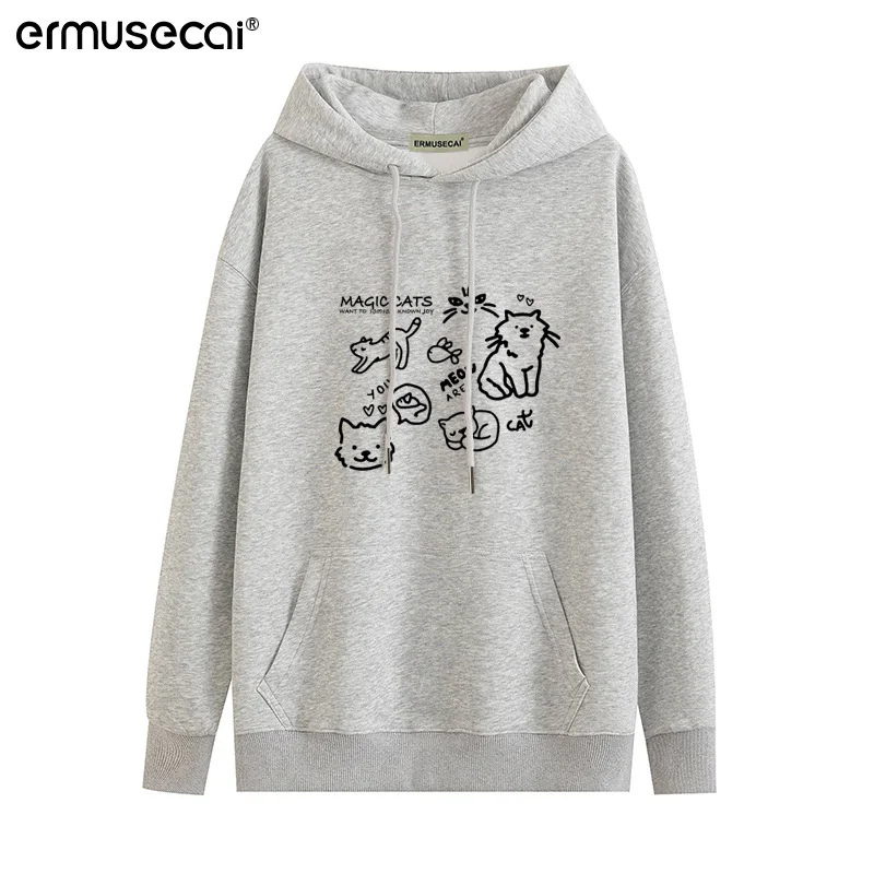 Athvotar Athvotar Cotton Cotton Composite Milk Silk 350G) Autumn And Winter New Cat Print Loose Hooded Sweater
