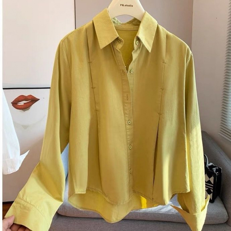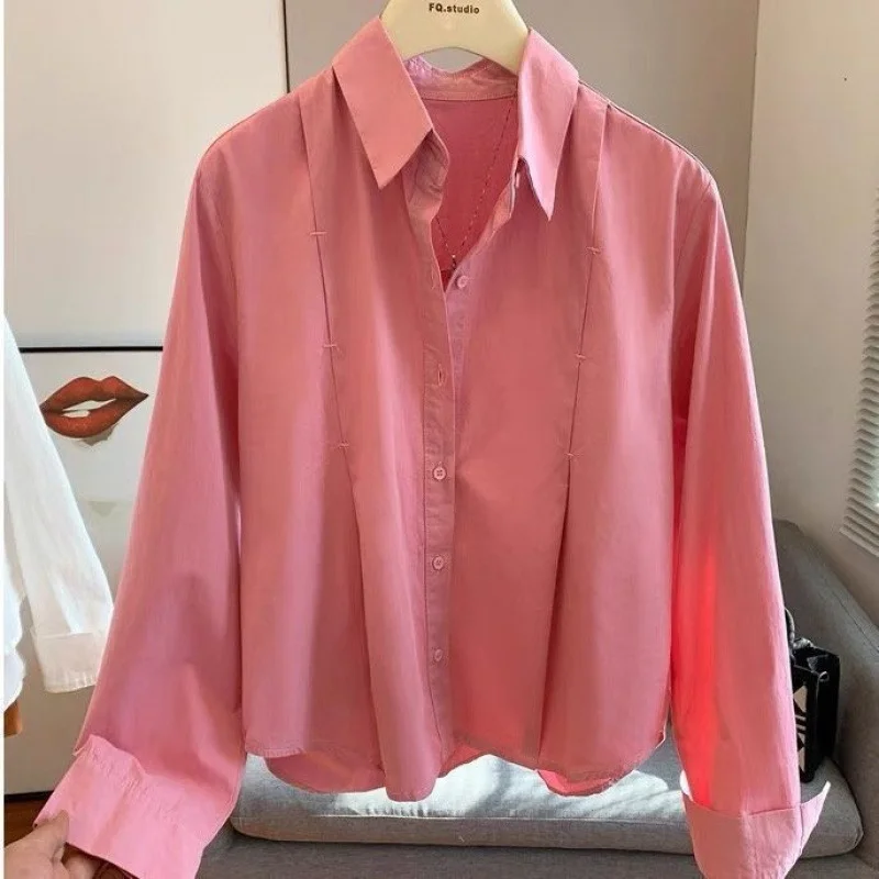 Athvotar Athvotar Cotton Short Loose Shirt Women 2025 Spring Dress New Casual Long-Sleeved Small Orange Shirt Woman