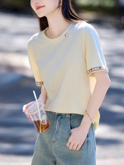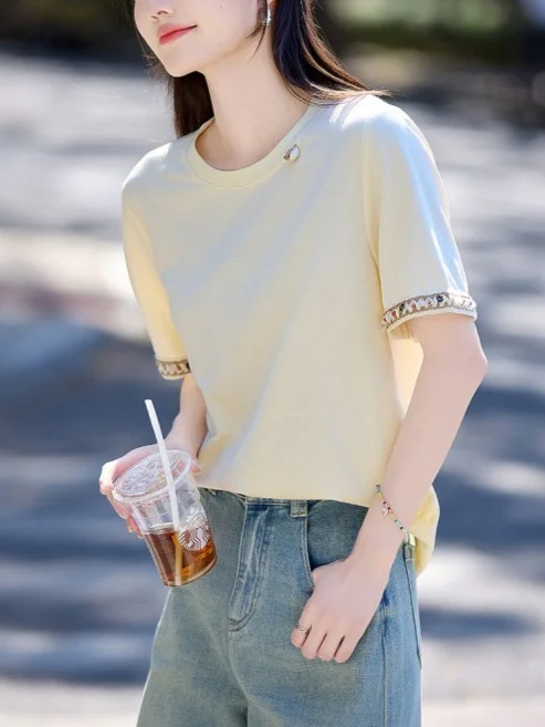Athvotar Athvotar Cream-Colored Top 25 Years Of Summer New Commute Fashion Design Lace Splicing Loose T-Shirt Girl