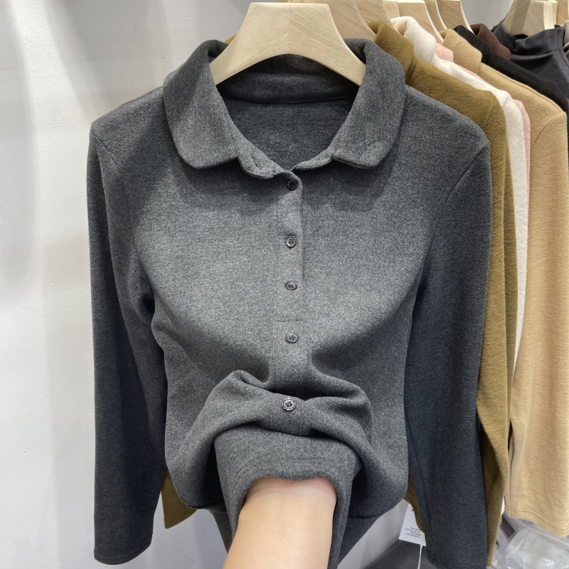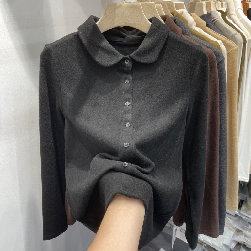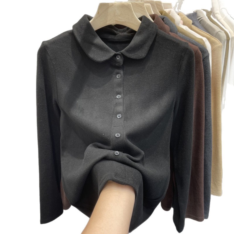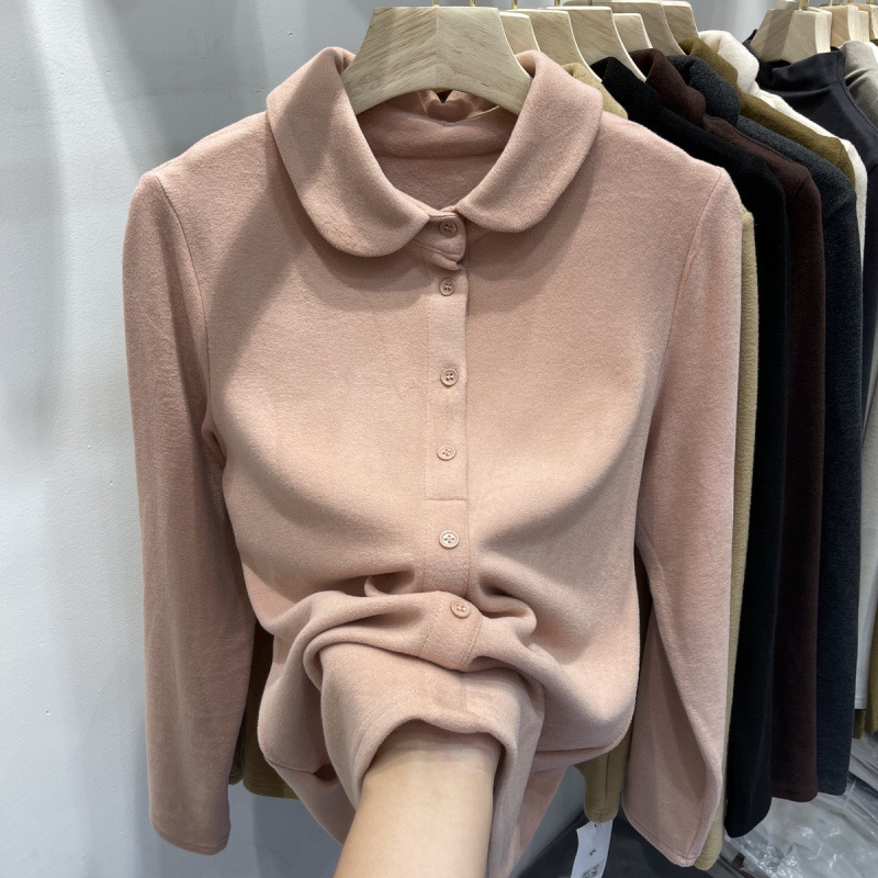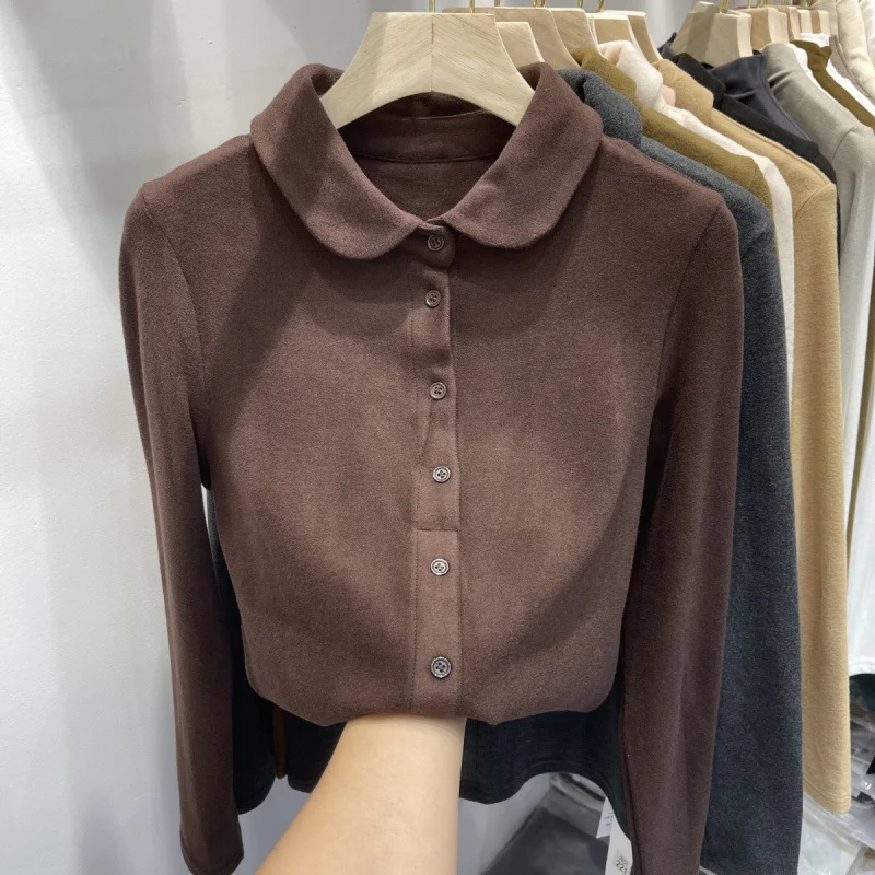 Athvotar Athvotar De-Velvet Shirt Bottomed Women 2025 Autumn And Winter Exquisite Collared Temperament Fashion Warm Inside The Shirt