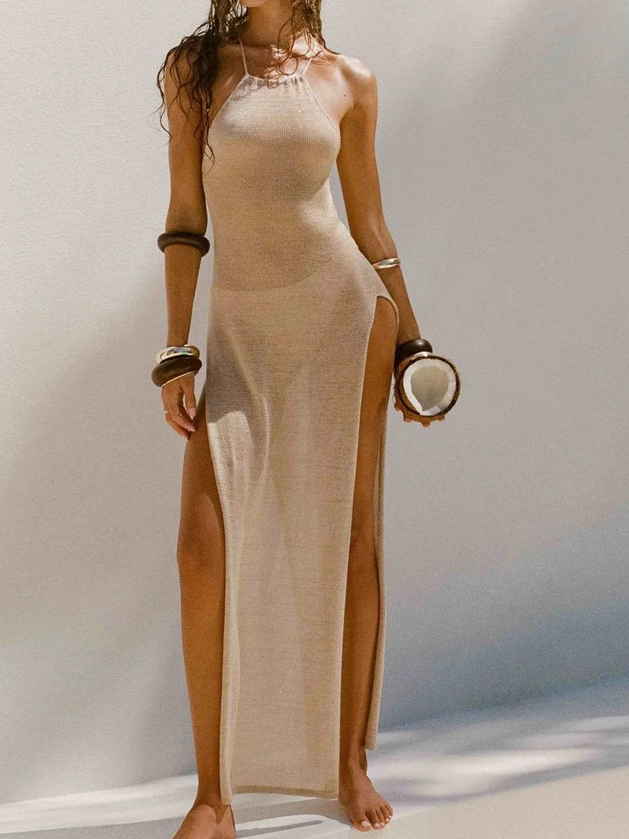 Athvotar Athvotar Dress Double Side High Fork Sling With Beautiful Back Knitted Dress Beach Hooded Woman
