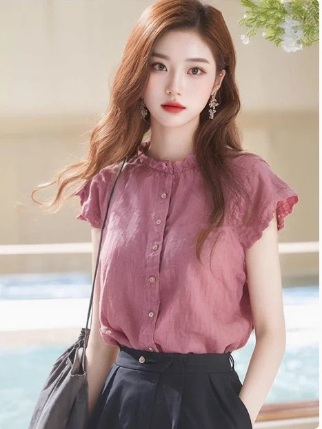 Athvotar Athvotar Ear Collar Simple Small Flying Sleeve Shirt Female Design Sense Of Small Summer Single Special Beautiful Shirt Top