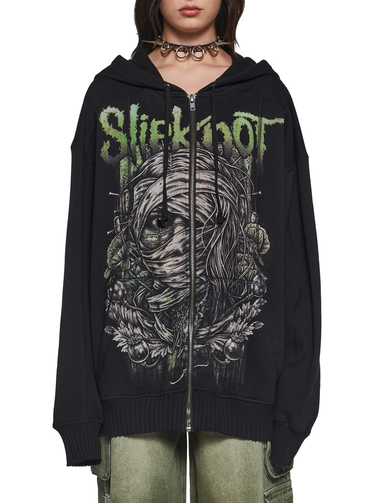 Athvotar Athvotar Embroidered Hoodie Hoodie Female Dark Letter Heavy Metal Style To Make Old Texture Zipper Coat
