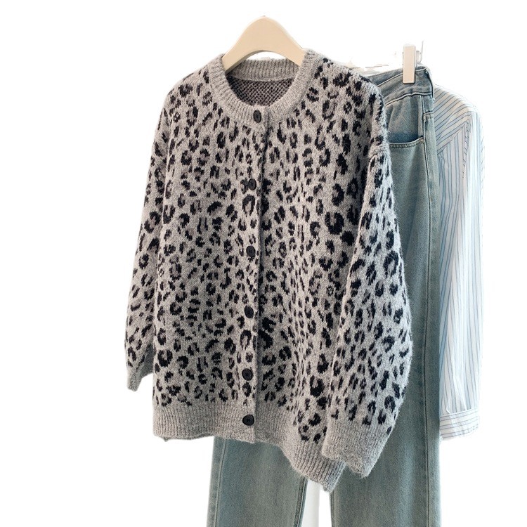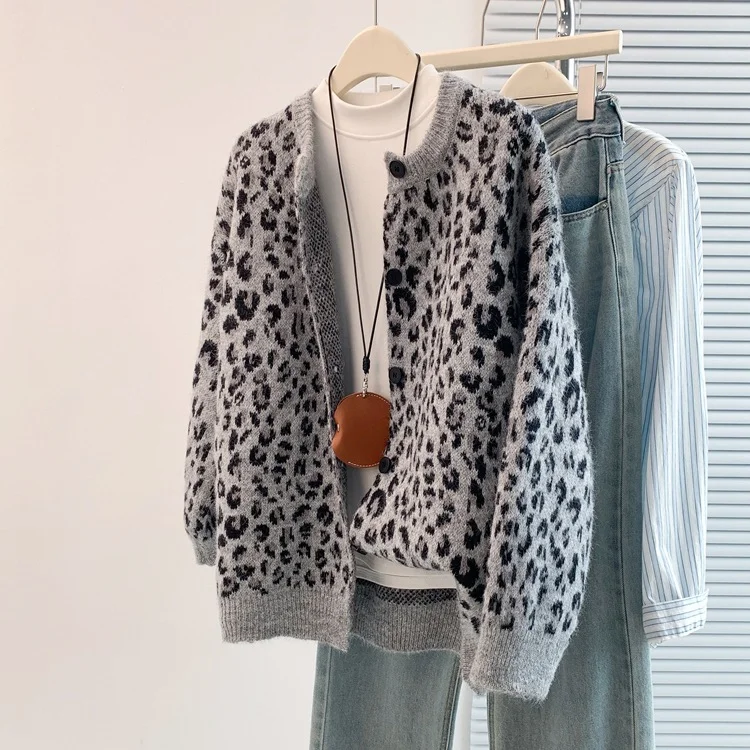 Athvotar Athvotar European Version Of Retro Lazy Chic Leopard Single-Rower Buckle 2025 Knitted Cardigan Sweater Coat Women's Clothing