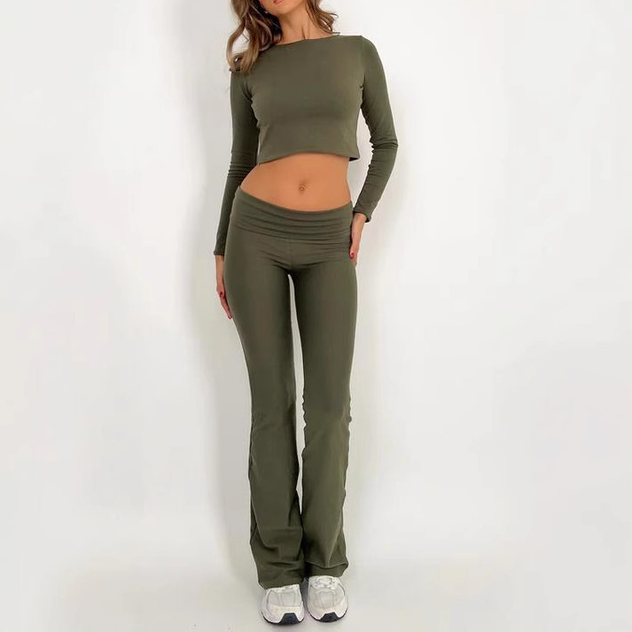 Athvotar Athvotar Fashion Casual Hottie Umbilized Summer Milk Silk Long-Sleeved Top Two Sets Of Women
