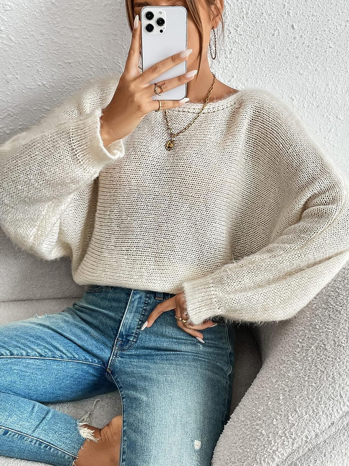 Athvotar Athvotar Fashion Sexy Hollow Knitted Sweater Collared Bat Shirt Woman