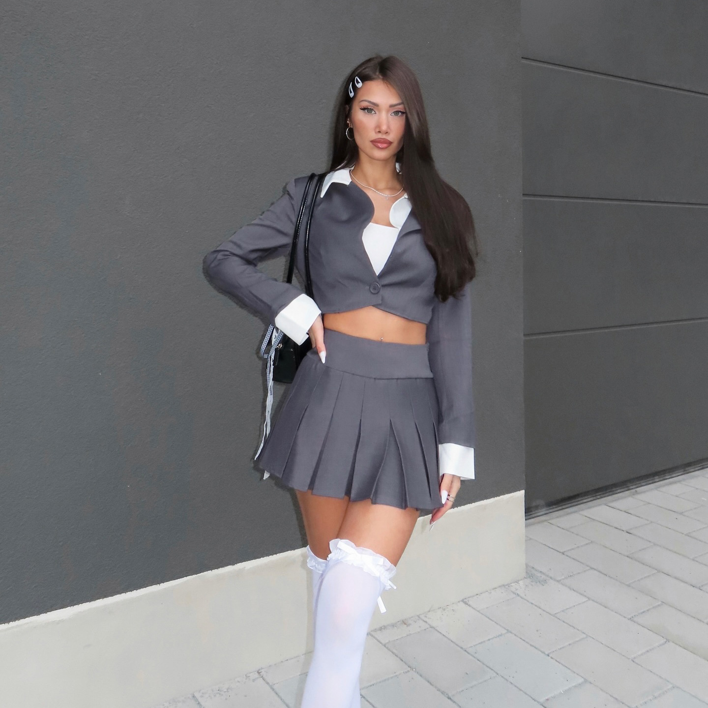 Athvotar Athvotar Girl Wind Flip-Flops Open-Necked Two-Piece Suit 100-Fold Skirt Trend Fashion Summer New Women's Suit