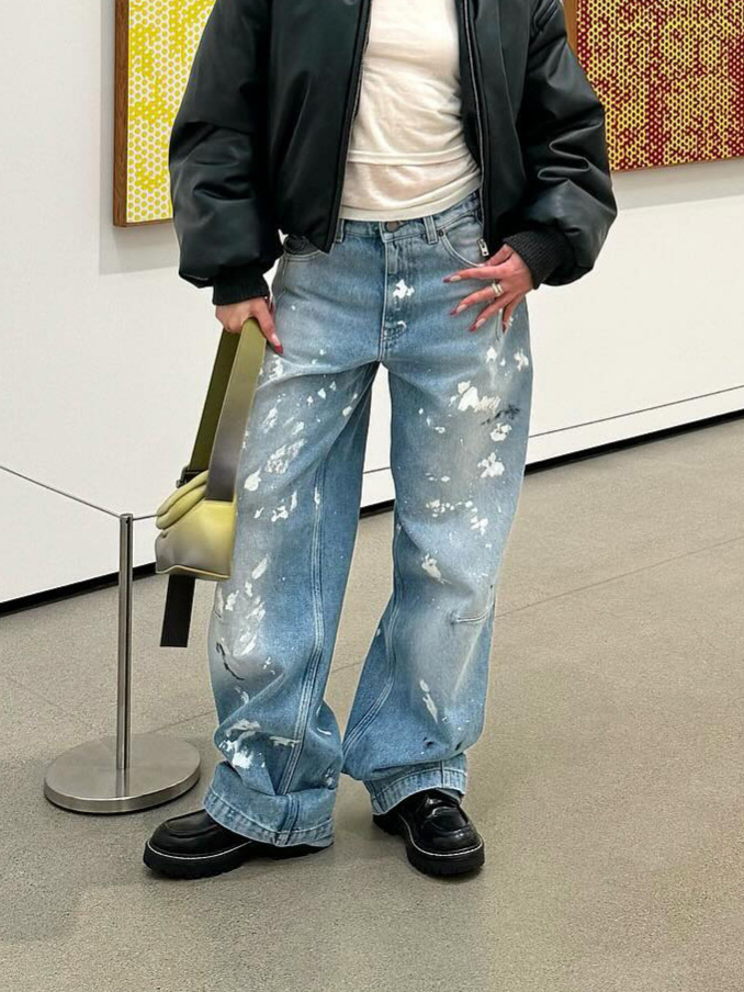 Athvotar Athvotar Graffiti Babes Jeans Women Autumn New Mid-Rise Straight-In Thin Casual Denim Trousers