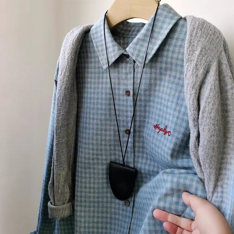 Athvotar Athvotar Gray Plaid Shirt Women 2025 Spring And Autumn New Loose Lazi Folding Shirt Coat Top