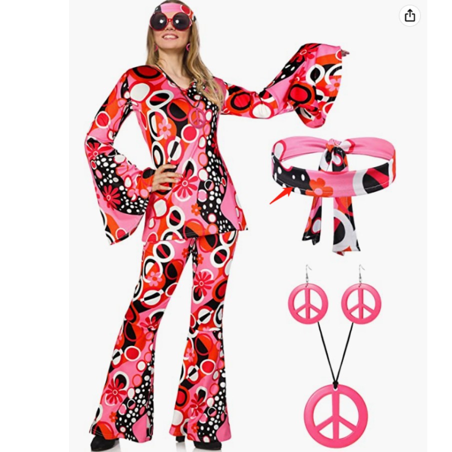Athvotar Athvotar Halloween Women's Print Tops T Hongha Horn Pants Set + Headscarf
