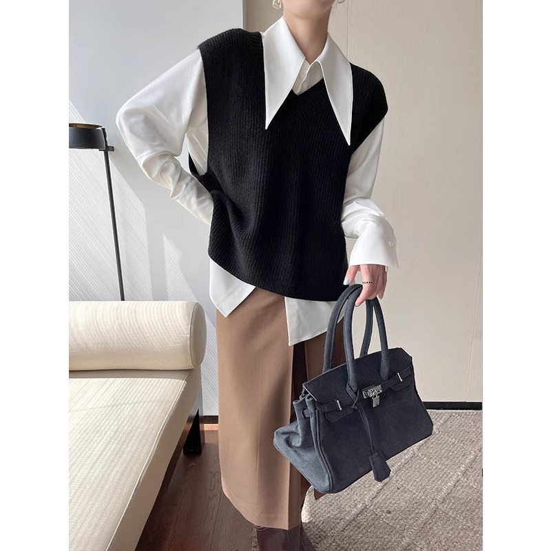 Athvotar Athvotar High-End Sharp Collar Shirt Female Port Taste Retro Trendy Modern Hanging Shirt Chic Niche Shirt