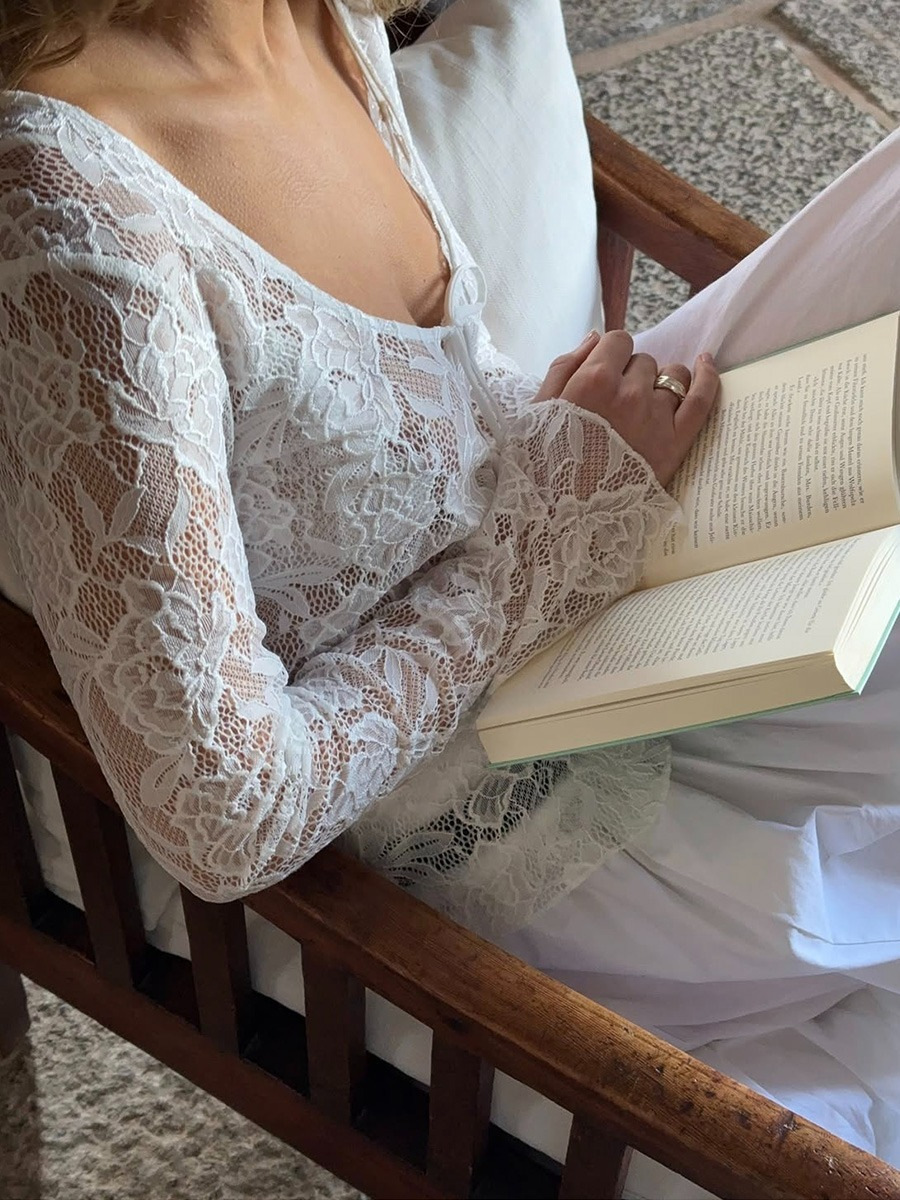 Athvotar Athvotar Hollow U-Neck Long-Sleeved Lace Jersey Women's Spring And Summer Can Be Folded With Sweet And Spicy Pure Lust Burqas Sunscreen Tops