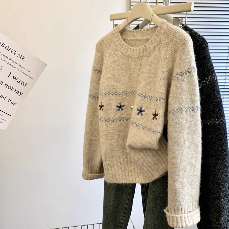 Athvotar Athvotar Horn Buckle Sweater Cardigan Women's Autumn And Winter Korean Loose Lazy Wind Embroidered Jakore Knitwear Coat