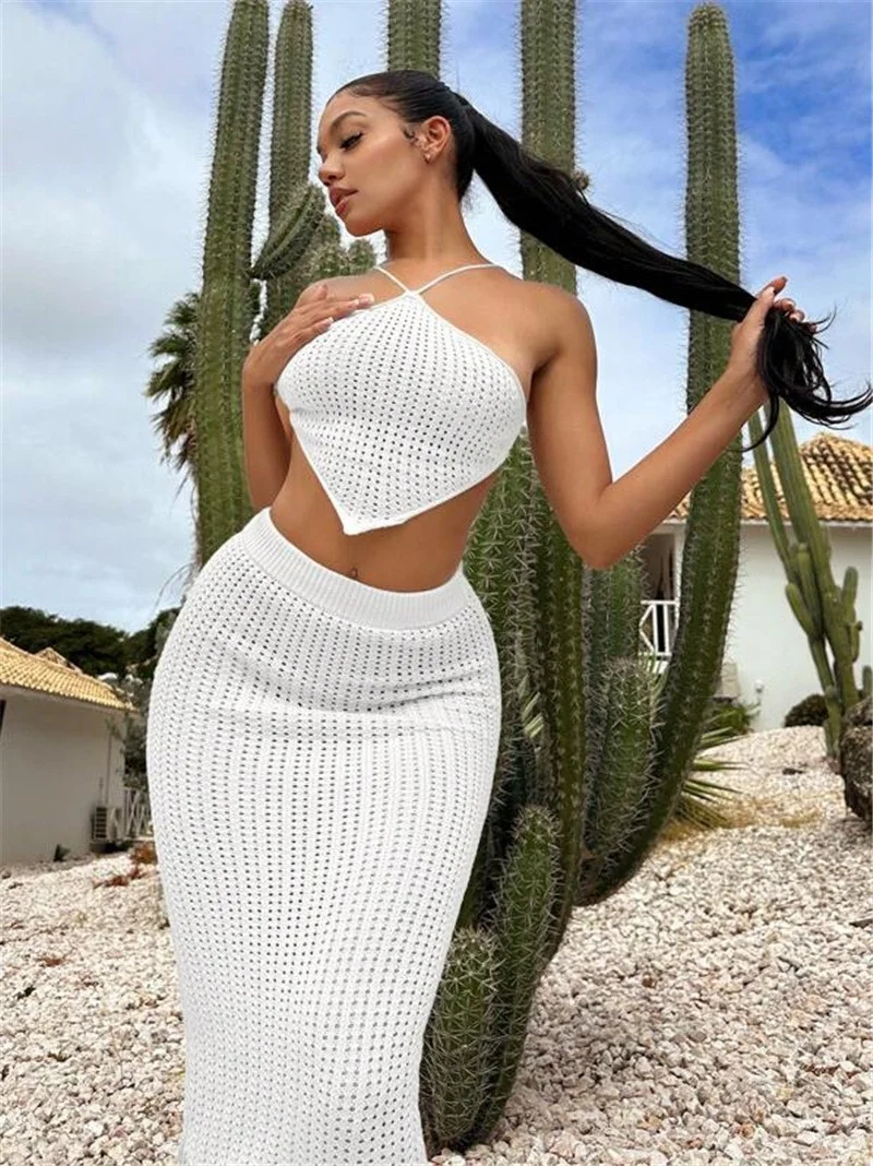 Athvotar Athvotar Irregular Sexy Knitted Sweater Sling Vest Women Tight-Bag Ass Skirt Set