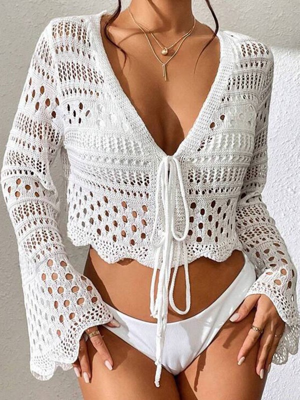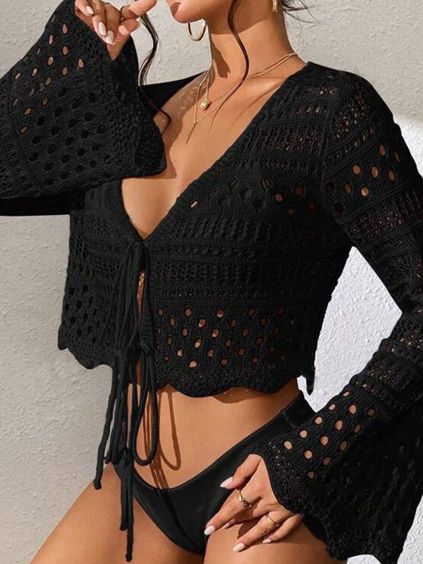 Athvotar Athvotar Knitted Hollow Beach Hoodie Strapped With Open Shirt Bikini Outside