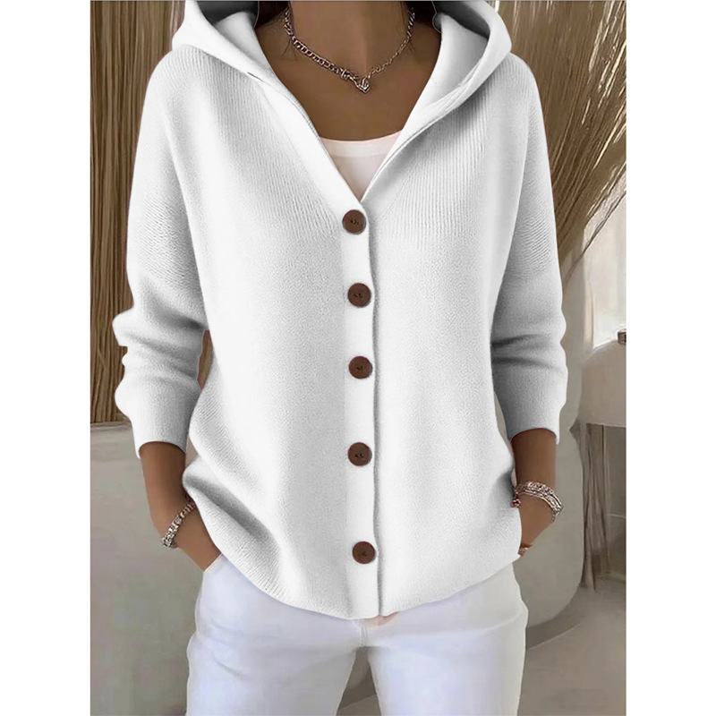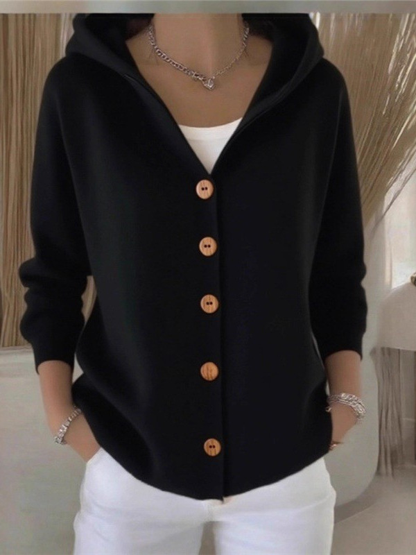 Athvotar Athvotar Knitted Hooded Sweater Button Open Shirt Jacket Autumn And Winter New Solid Color Casual Fashion Sweater