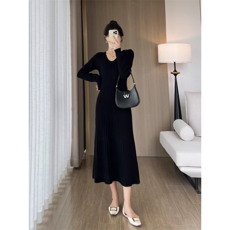Athvotar Athvotar Knitting Dress That Matches Overcoat Female Autumn Winter Temperament Famous Socialite Senior Sense To Close Waist Inside Build A Word Wool Skirt Long Skirt