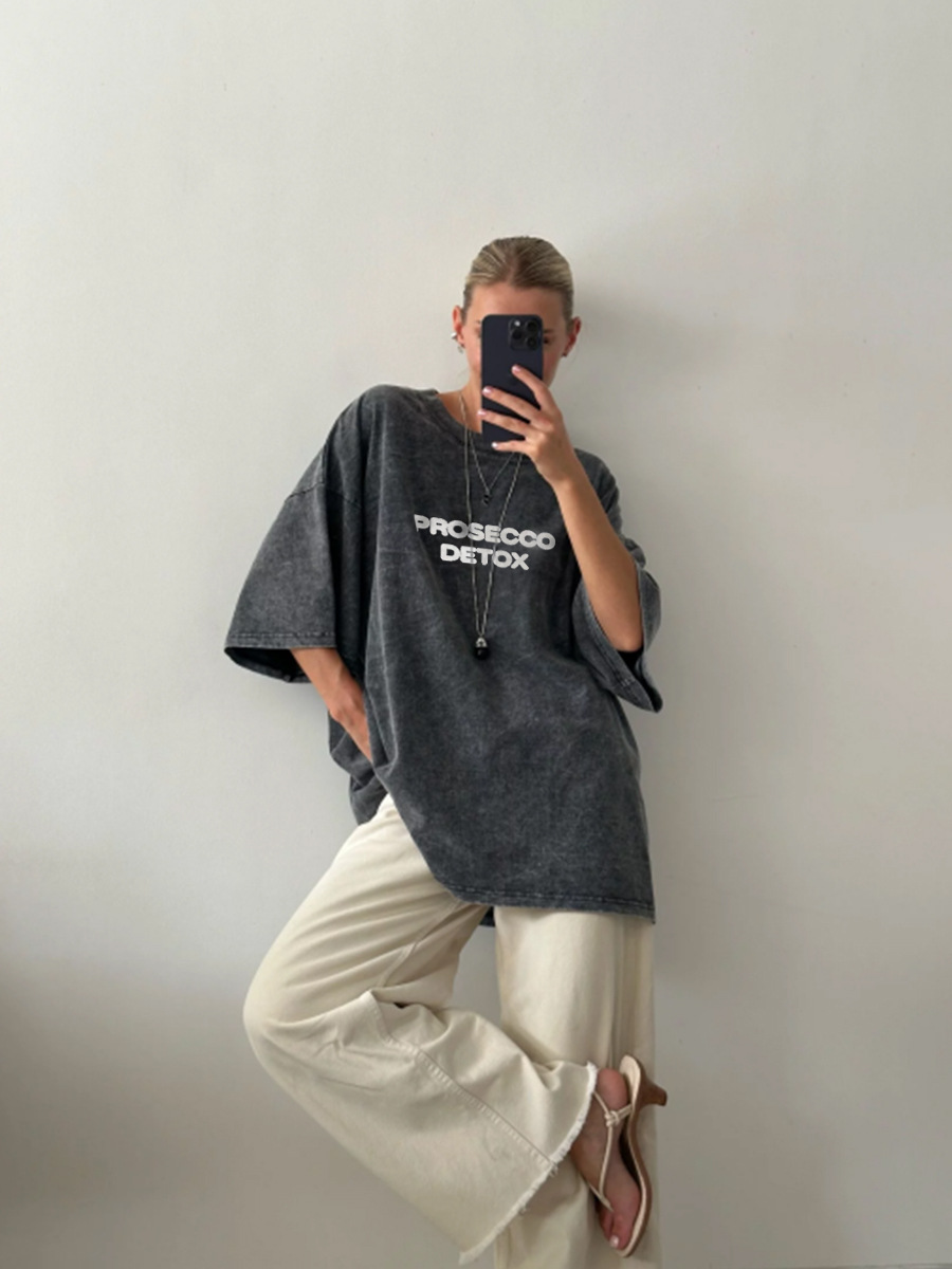 Athvotar Athvotar Letter Print Short-Sleeved T-Shirts For Women's Summer New Water Wash To Make Old Design Feel Bottoming Top Ins