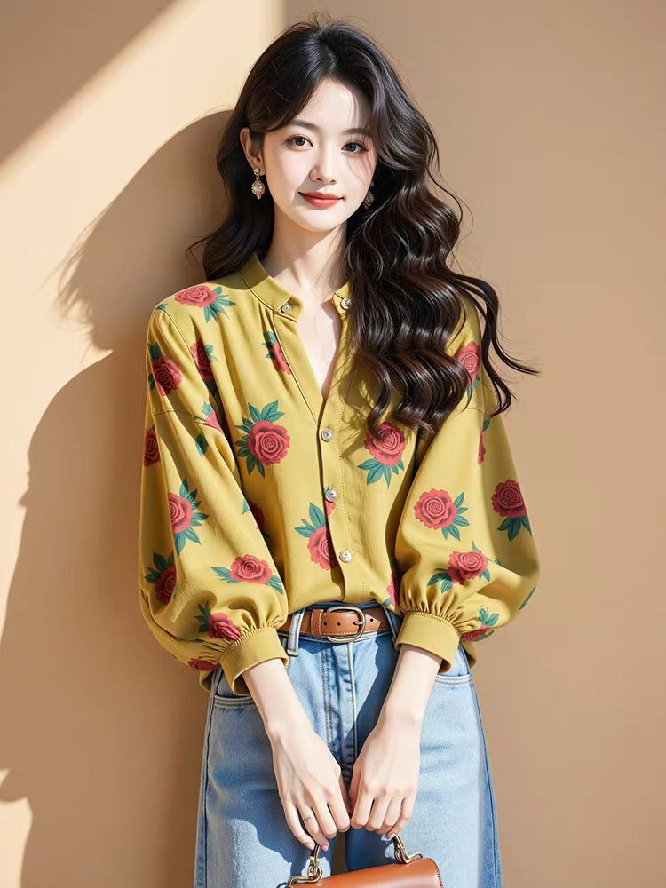 Athvotar Athvotar Long-Sleeved Chiffon Floral Shirt Woman 2025 Early Spring Single-Drip Design Shirt Open Shirt