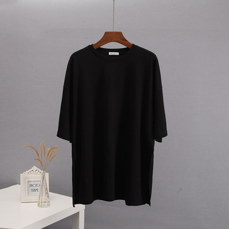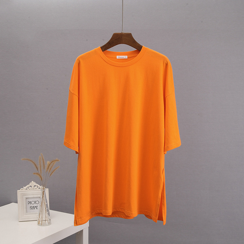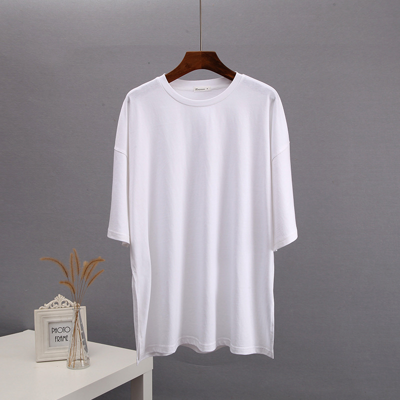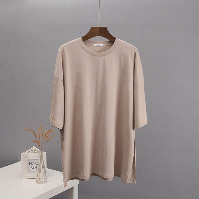 Athvotar Athvotar Loose Open Fork Cotton Short-Sleeved T-Shirt Women Comfortable Round Neck Solid Color T Hot Sale