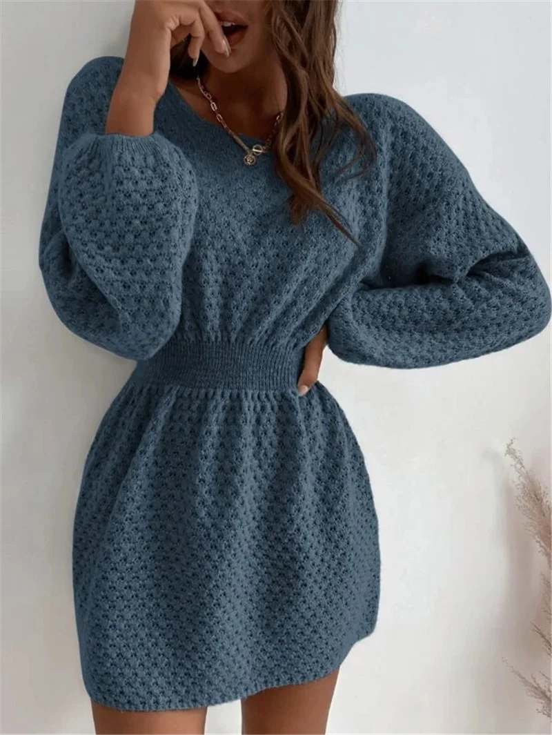 Athvotar Athvotar Loose Round Collar Design Feel Waist Sweater Knitted Dress