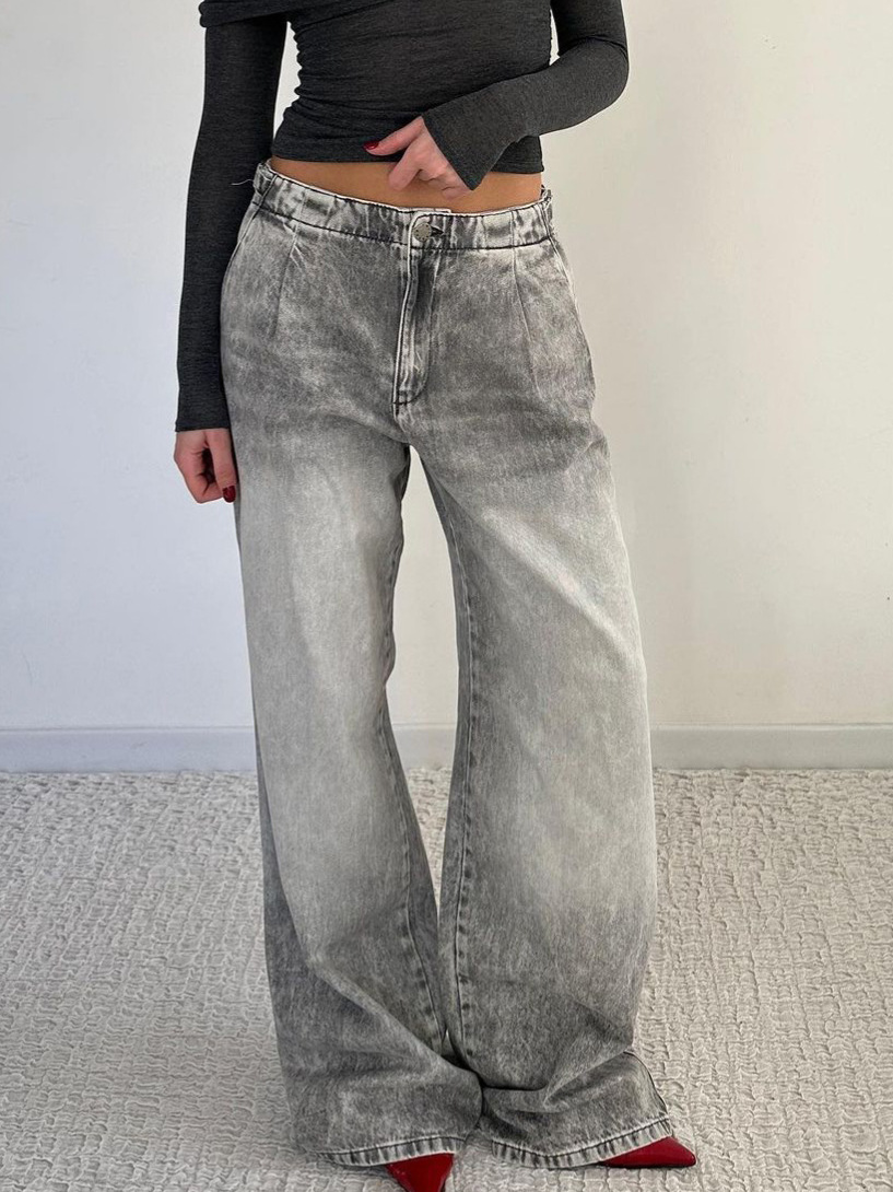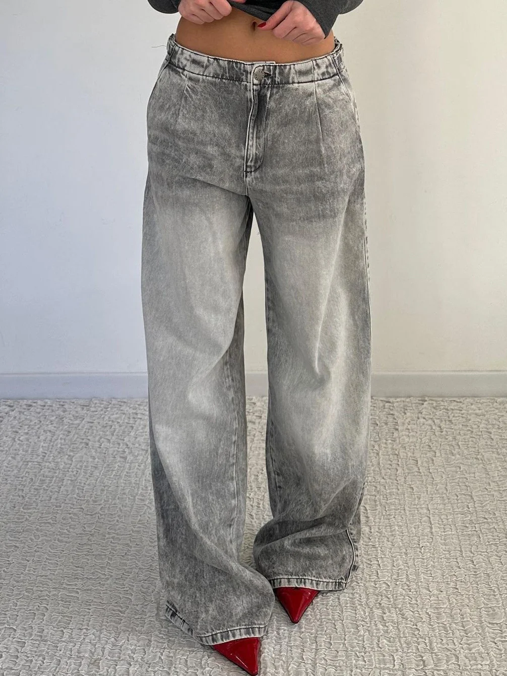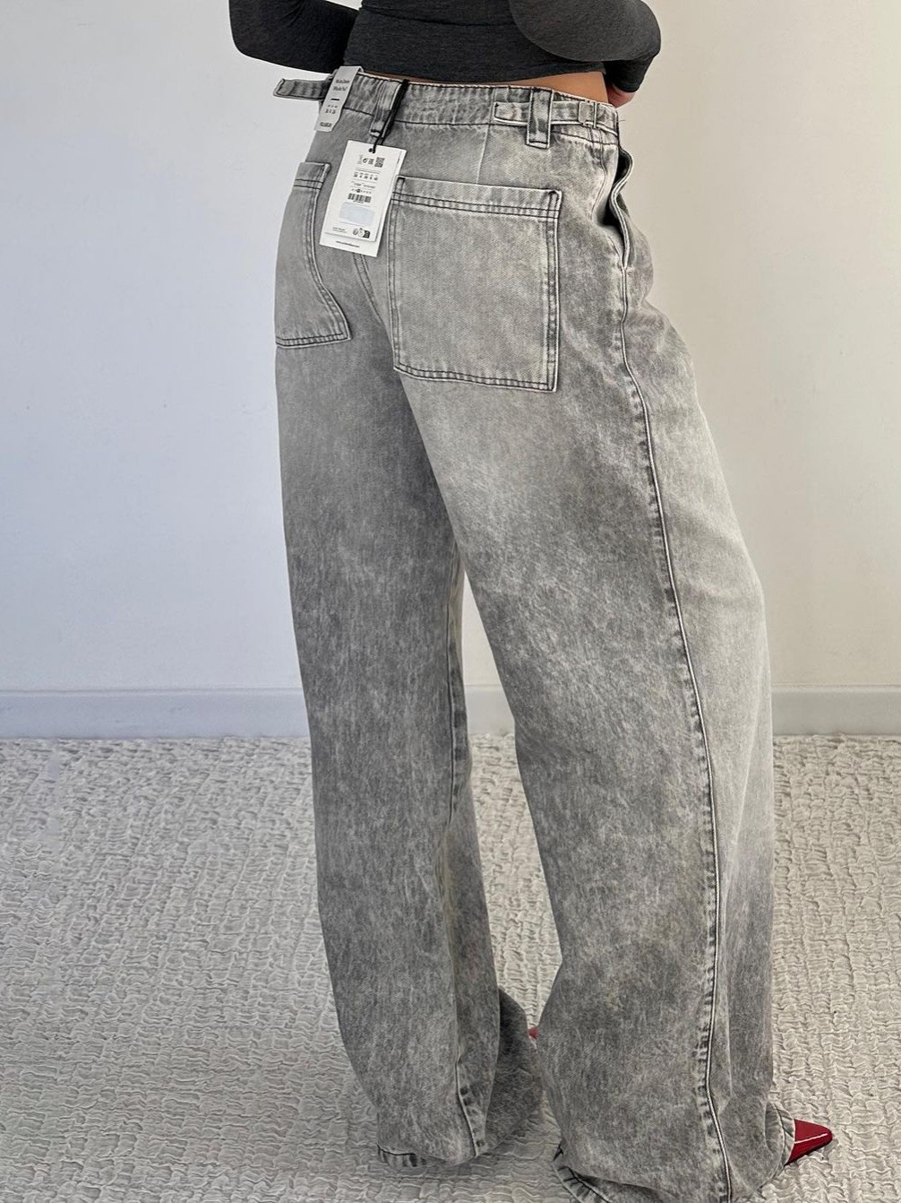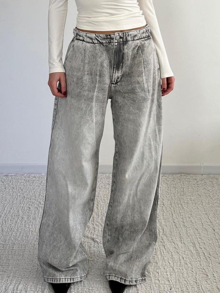 Athvotar Athvotar Low-Rise Old Denim Trousers Street Retro Washing Wide Legs Jeans Female Sense