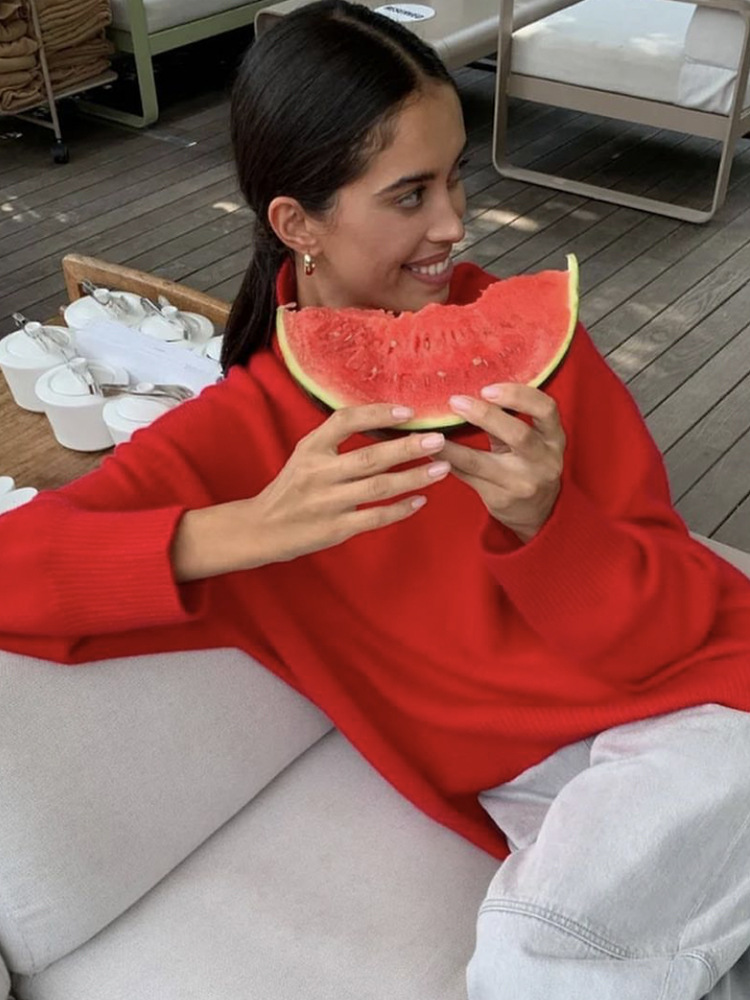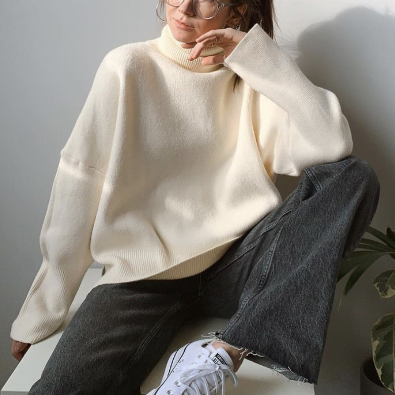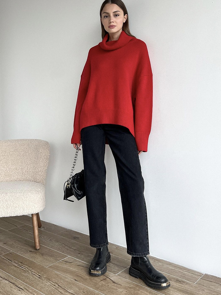 Athvotar Athvotar Multi-Color High-Necked Solid-Color Sweater Women Loose Collar Collar Collar Women's Clothing 66